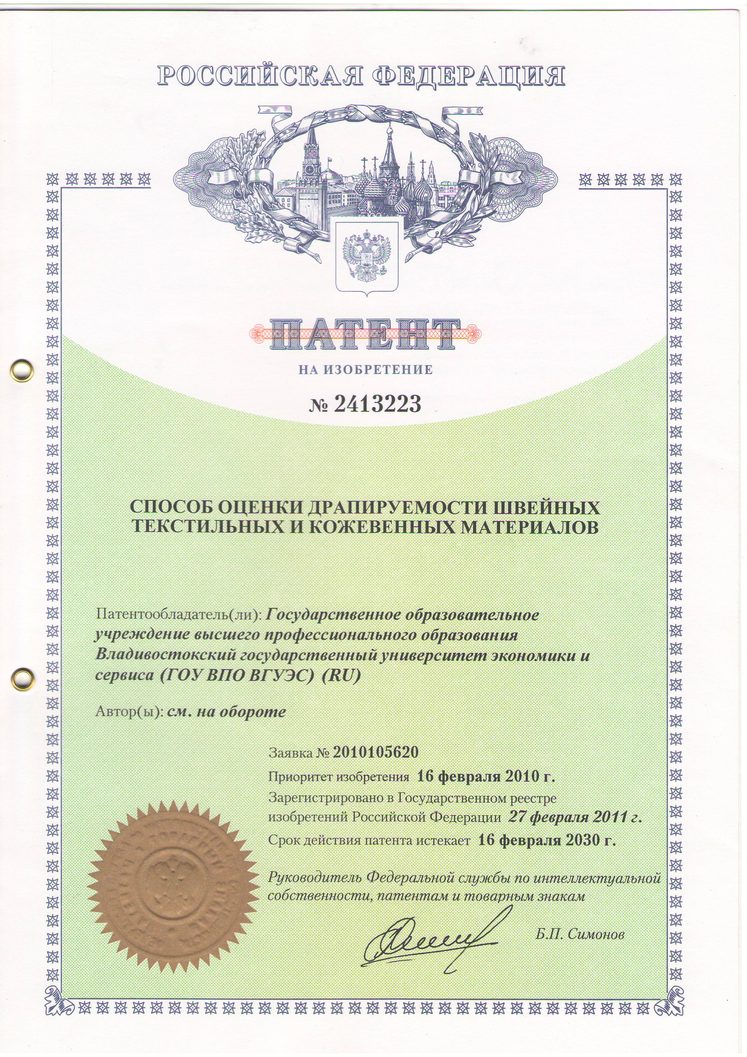 изобретение «Способ оценки драпируемости швейных текстильных и кожевенных материалов»