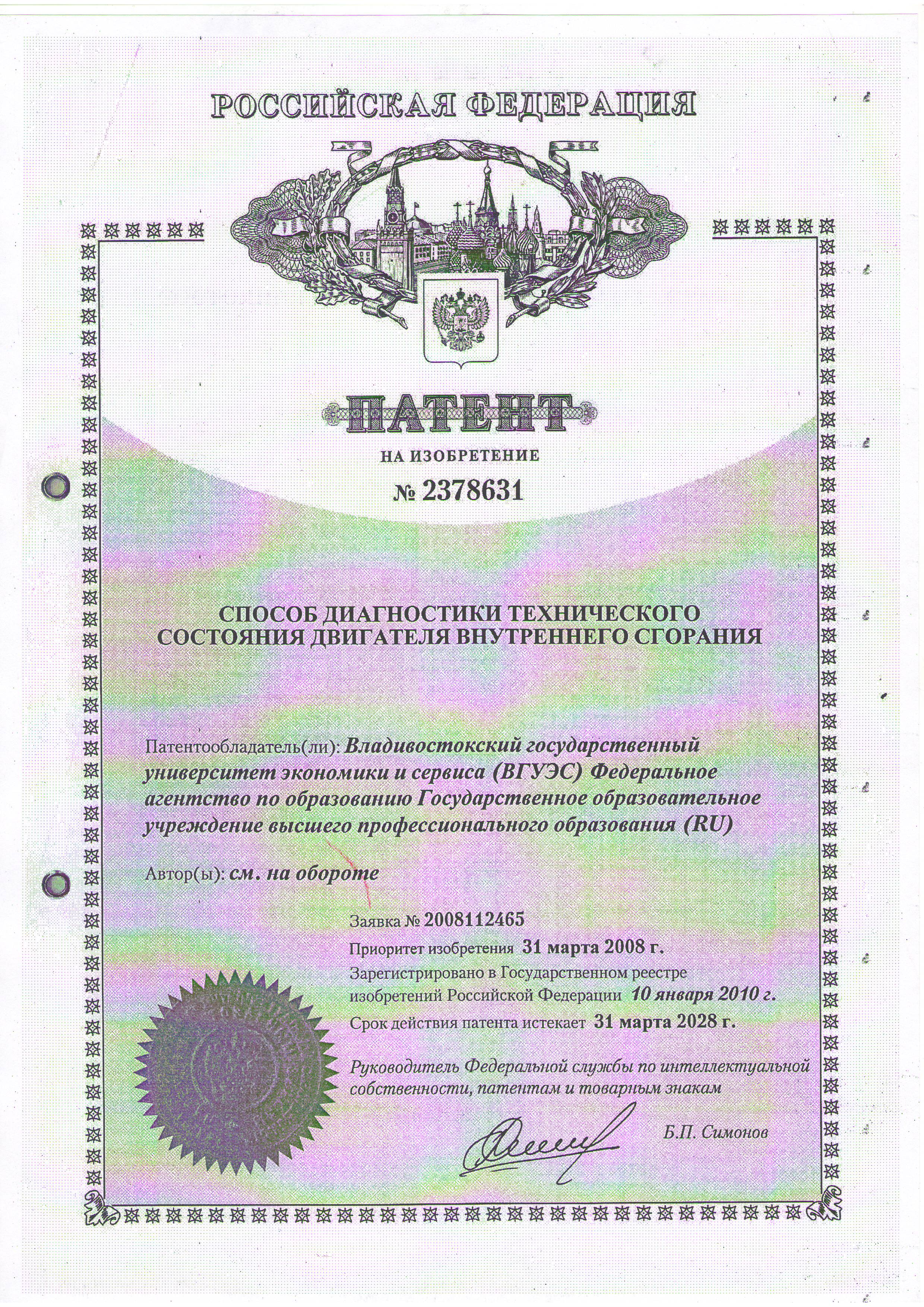 изобретение «Способ диагностики технического состояния двигателя внутреннего сгорания»