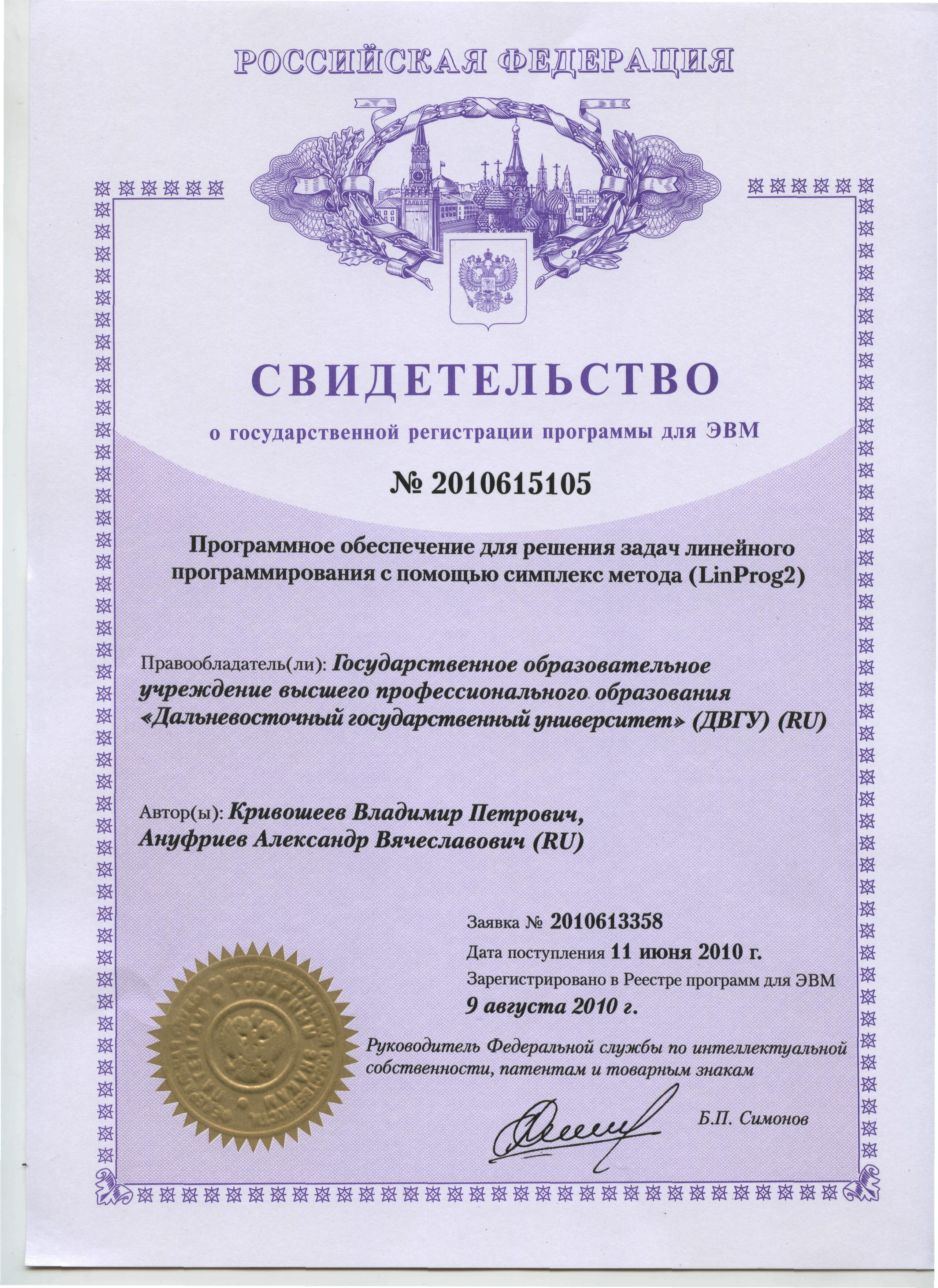 Свидетельство о государственной регистрации программ для ЭВМ