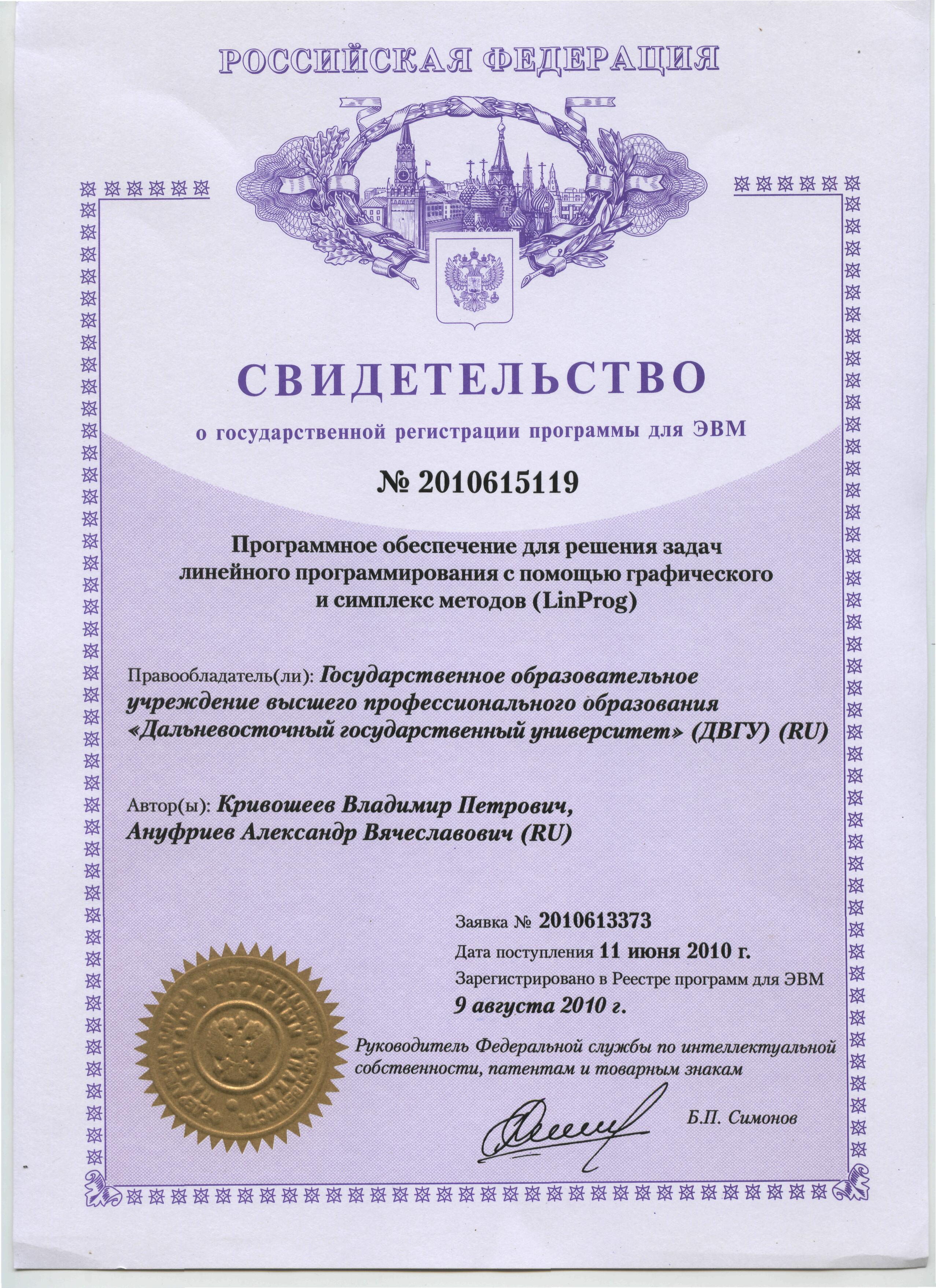 Свидетельство о государственной регистрации программ для ЭВМ