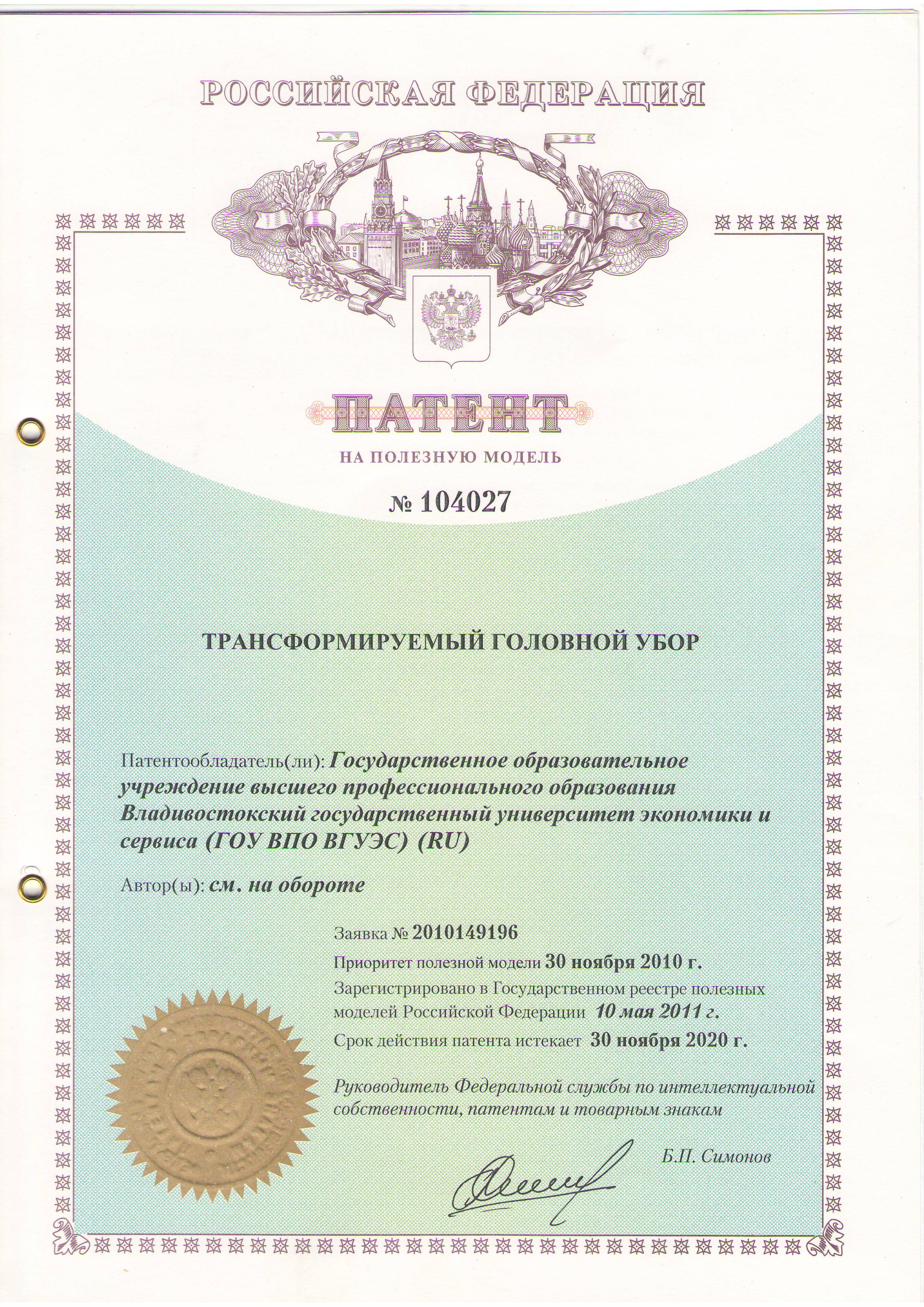 полезная модель «Трансформируемый головной убор»