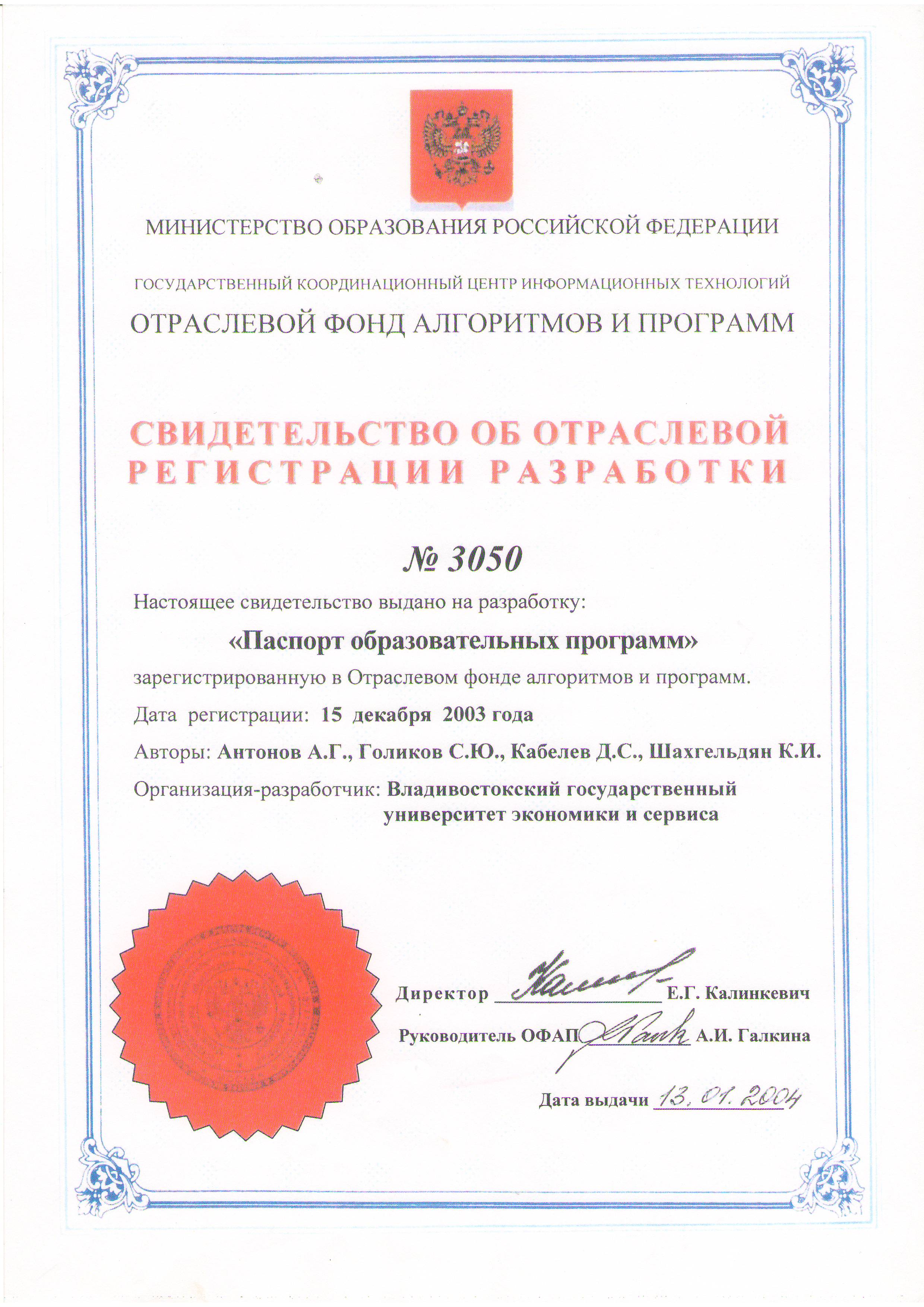 Паспорт образовательных программ