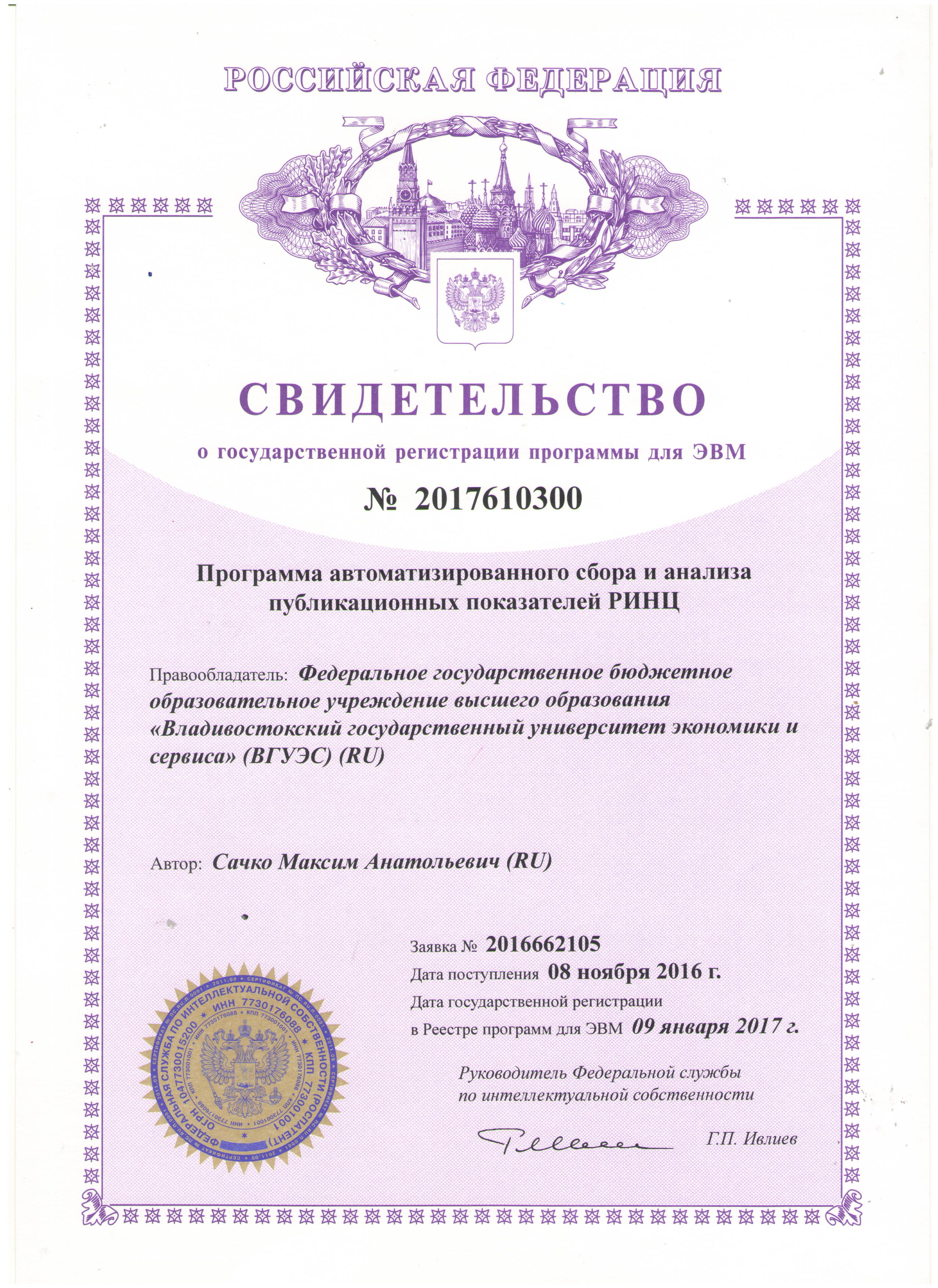 Программа создана с целью автоматизации сбора данных о публикациях сотрудников ВГУЭС, размещенных на сайте «Российский индекс научного цитирования» (РИНЦ). Программа позволяет производить сбор следующих данных с сайта РИНЦ (elibrary.ru): - список авторов зарегистрированных в РИНЦ и их основных публикационных показтелей; - публикации всех авторов с разбором их связей; - публикационные показатели научных журналов.