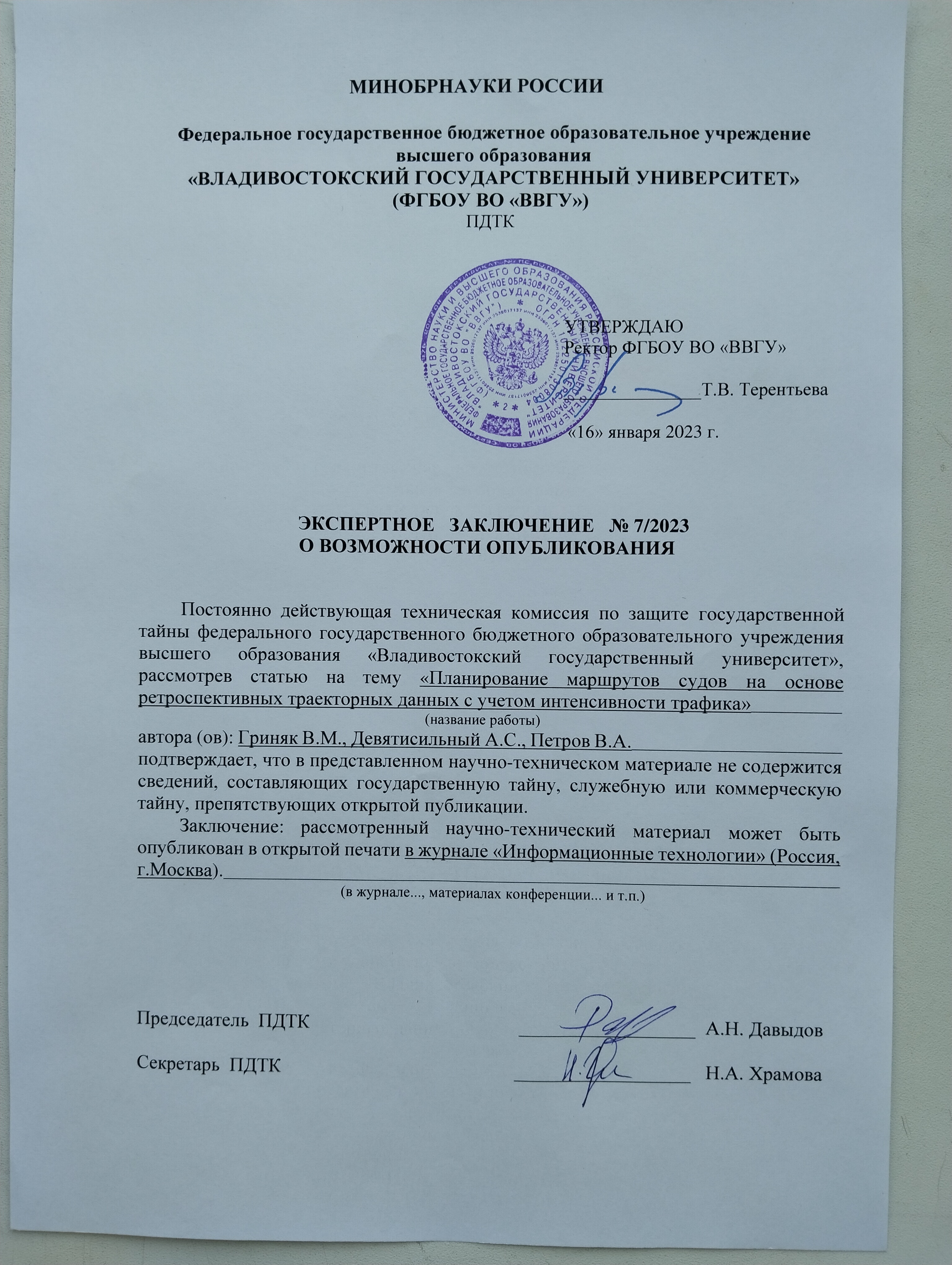 Планирование маршрутов судов на основе ретроспективных траекторных данных с учётом интенсивности трафика