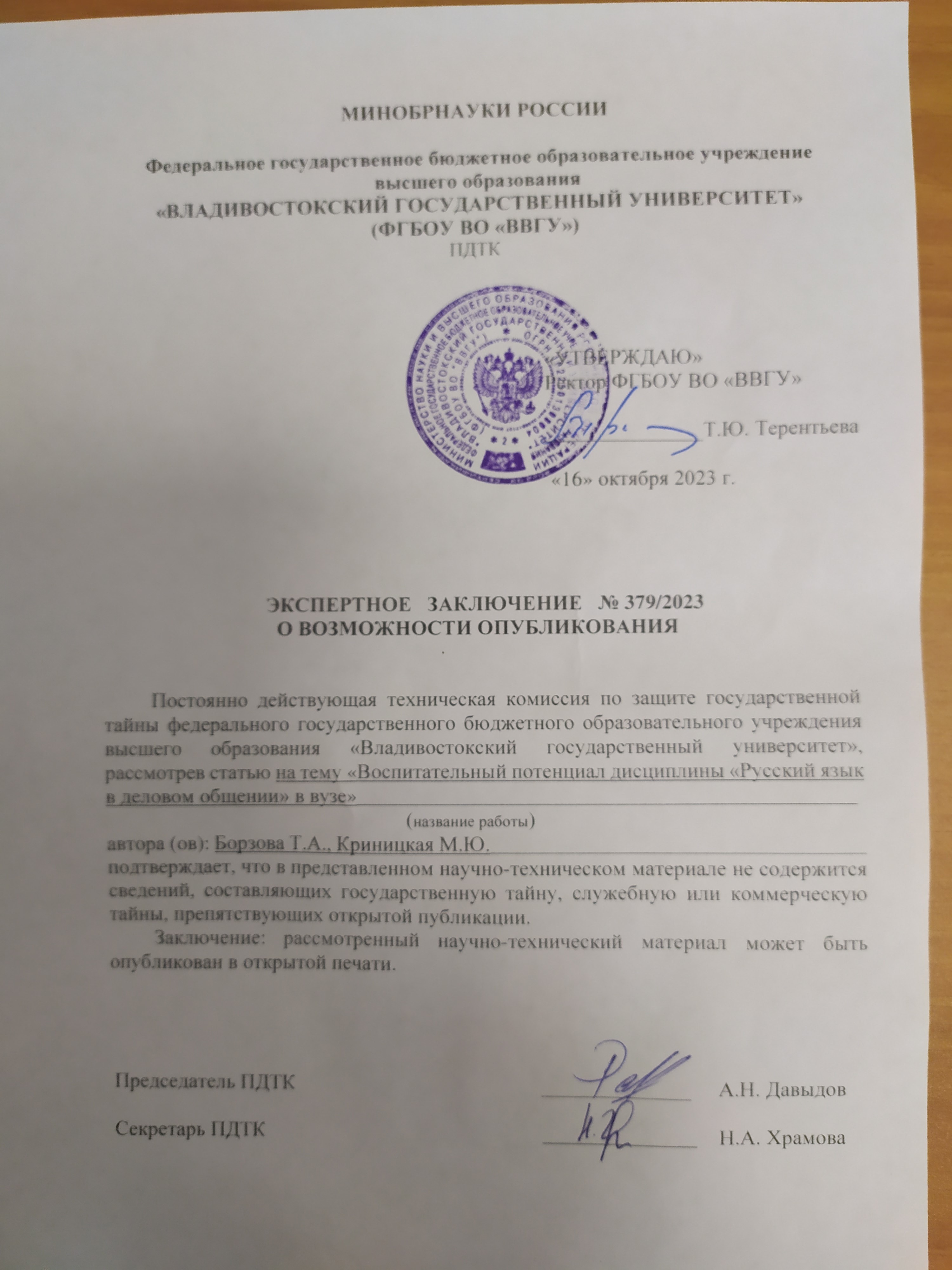 ВОСПИТАТЕЛЬНЫЙ ПОТЕНЦИАЛ ДИСЦИПЛИНЫ «РУССКИЙ ЯЗЫК В ДЕЛОВОМ ОБЩЕНИИ» В ВУЗЕ