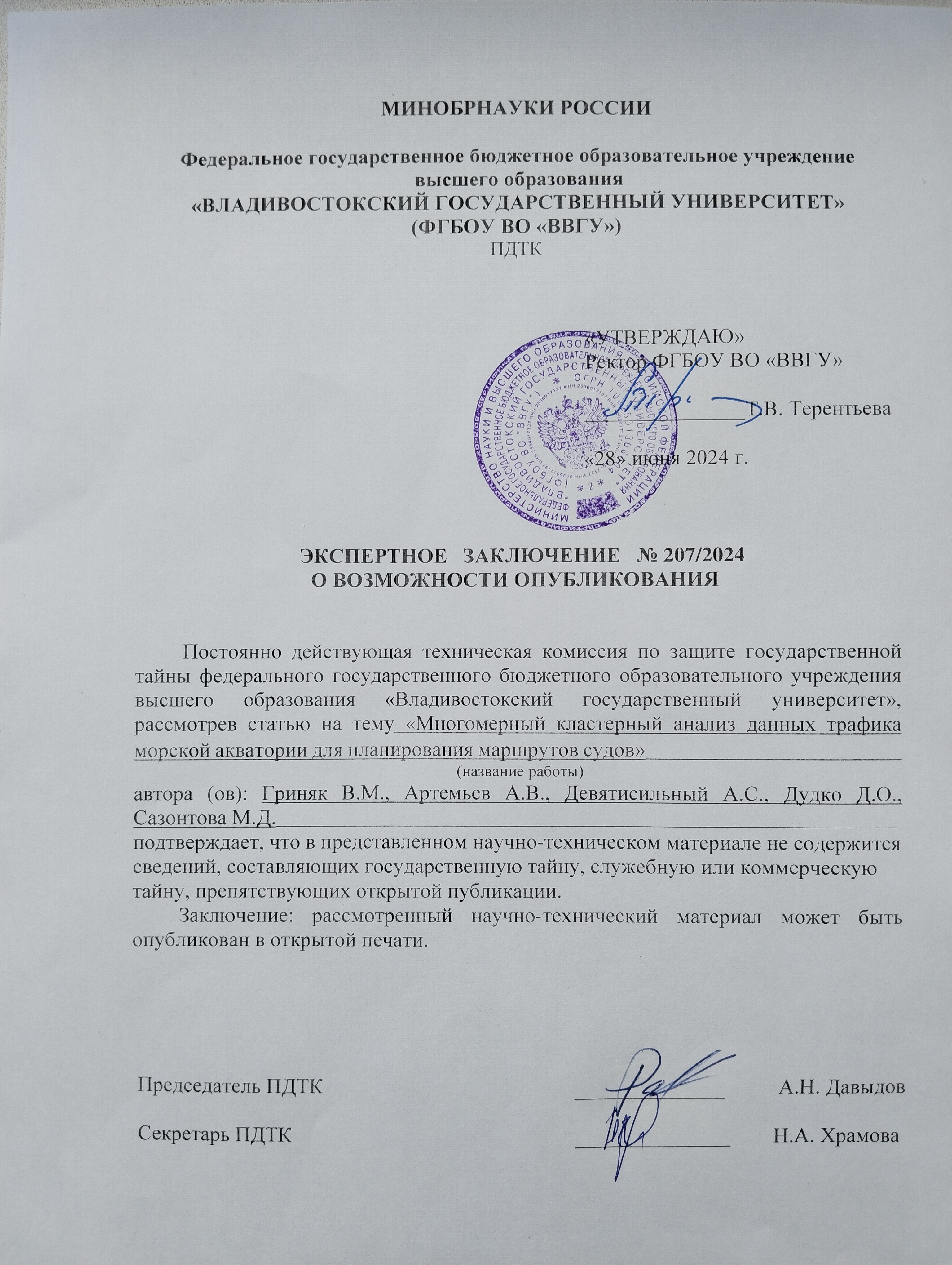 Многомерный кластерный анализ данных трафика морской акватории для планирования маршрутов судов
