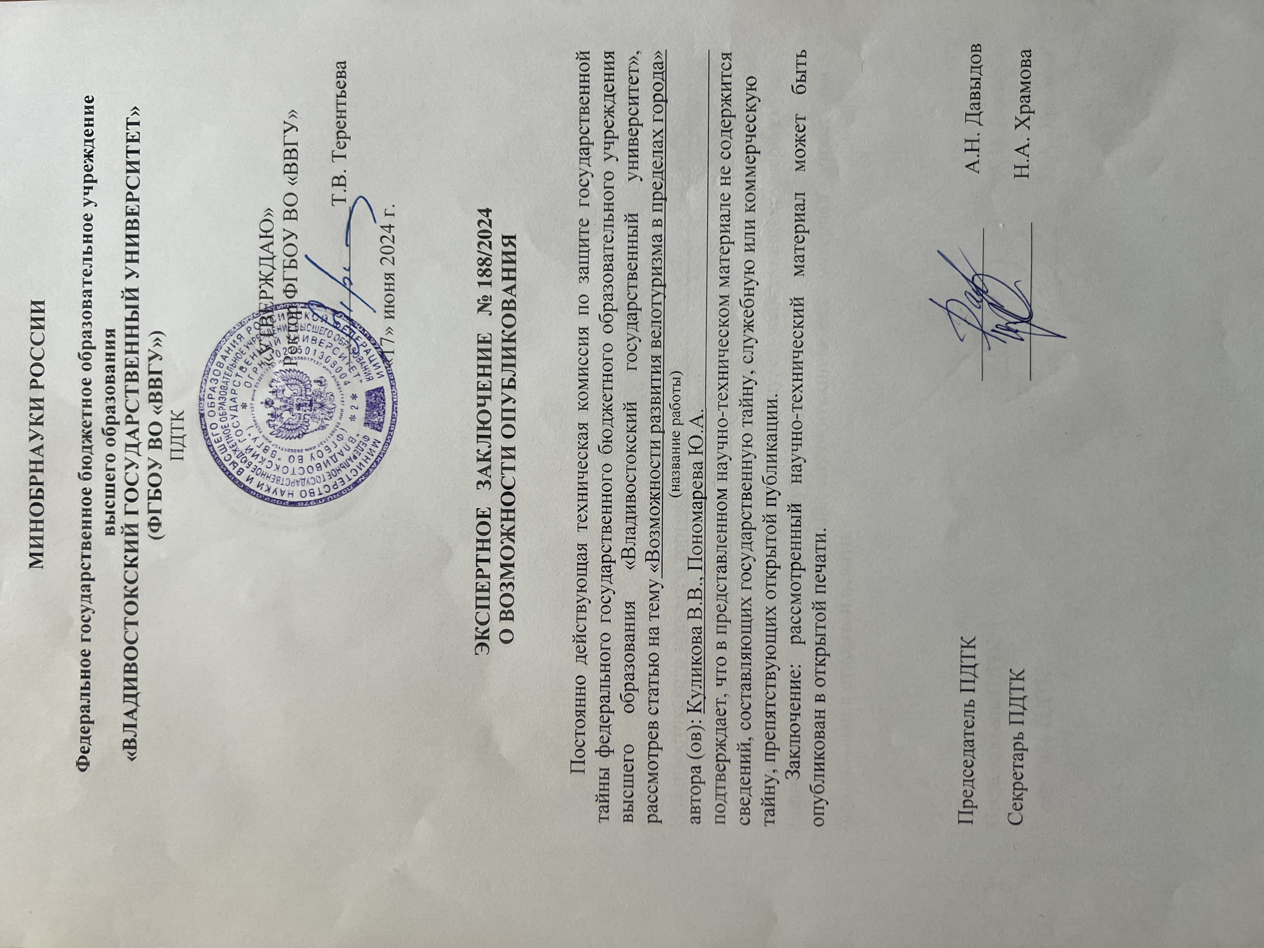 ВОЗМОЖНОСТИ РАЗВИТИЯ ВЕЛОТУРИЗМА В ПРЕДЕЛАХ ГОРОДА