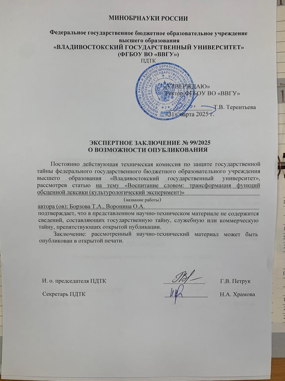 ВОСПИТАНИЕ СЛОВОМ: ТРАНСФОРМАЦИЯ ФУНКЦИЙ ОБСЦЕННОЙ ЛЕКСИКИ (КУЛЬТУРОЛОГИЧЕСКИЙ ЭКСПЕРИМЕНТ)