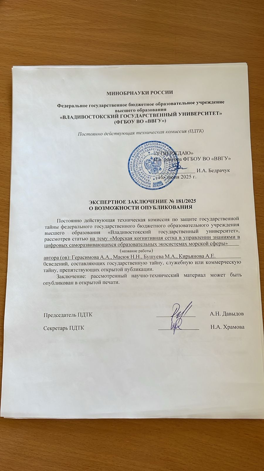 Морская когнитивная сетка в управлении знаниями в цифровых саморазвивающихся образовательных экосистемах морской сферы