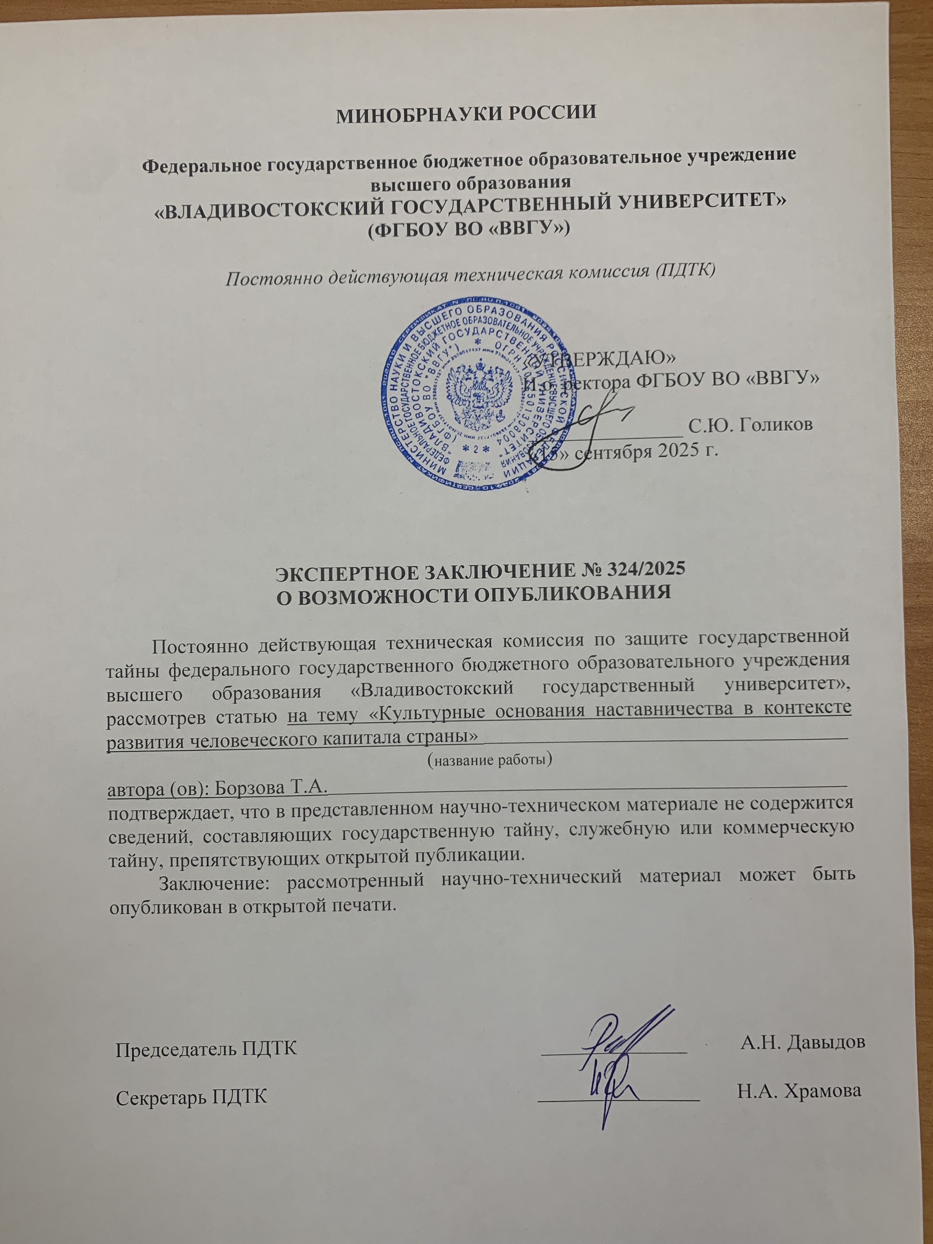 КУЛЬТУРНЫЕ ОСНОВАНИЯ НАСТАВНИЧЕСТВА В КОНТЕКСТЕ РАЗВИТИЯ ЧЕЛОВЕЧЕСКОГО КАПИТАЛА СТРАНЫ