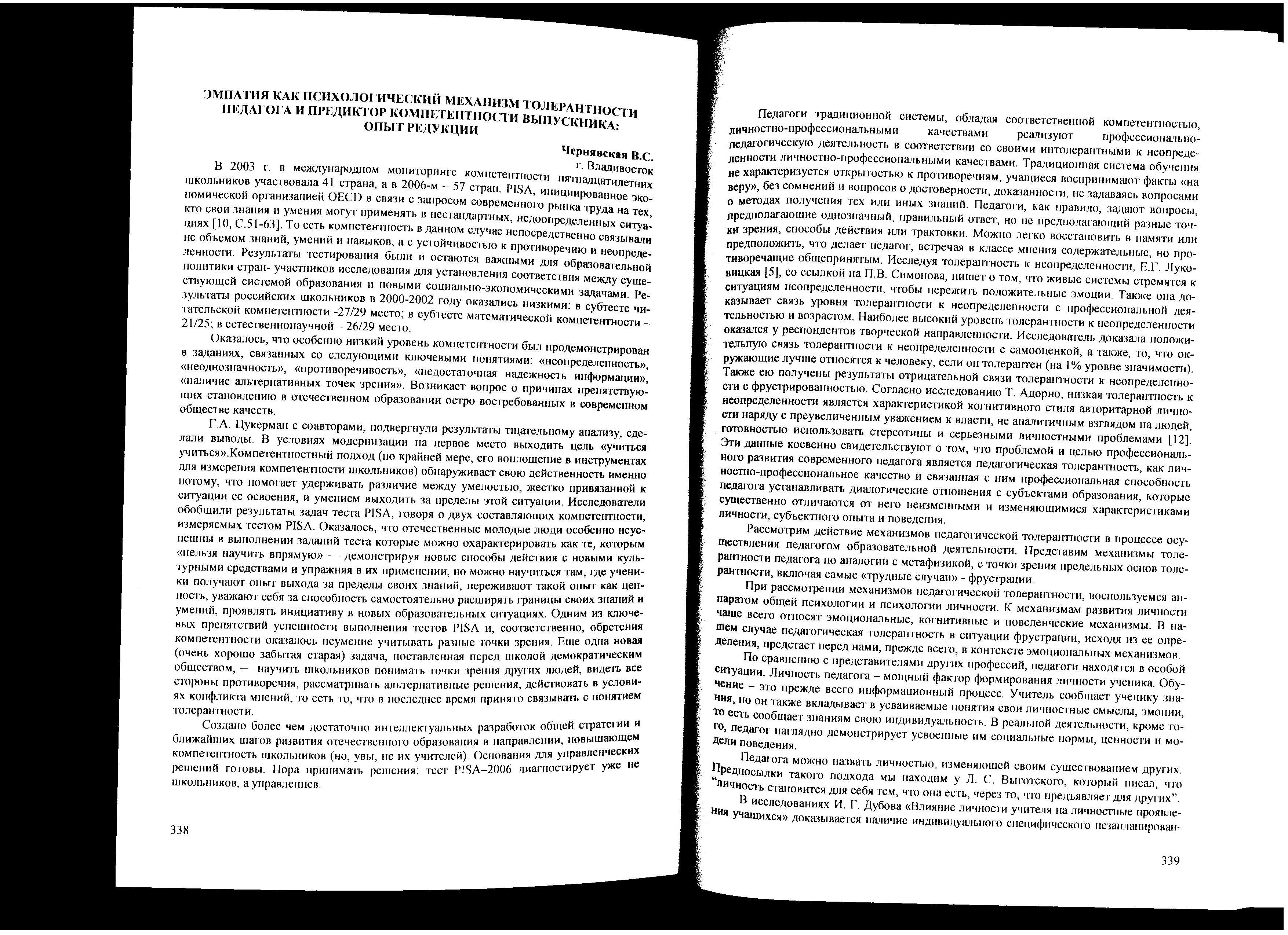Эмпатия как психологический механизм толерантности педагога и предиктор компетентности выпускника: опыт редукции