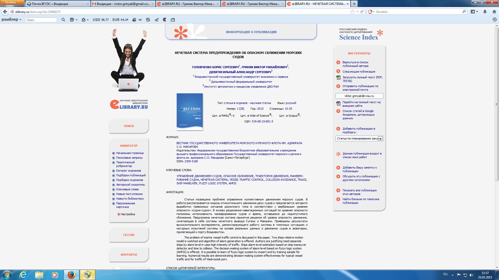 Вестник государственного университета морского и речного флота им. адмирала С.О. Макарова