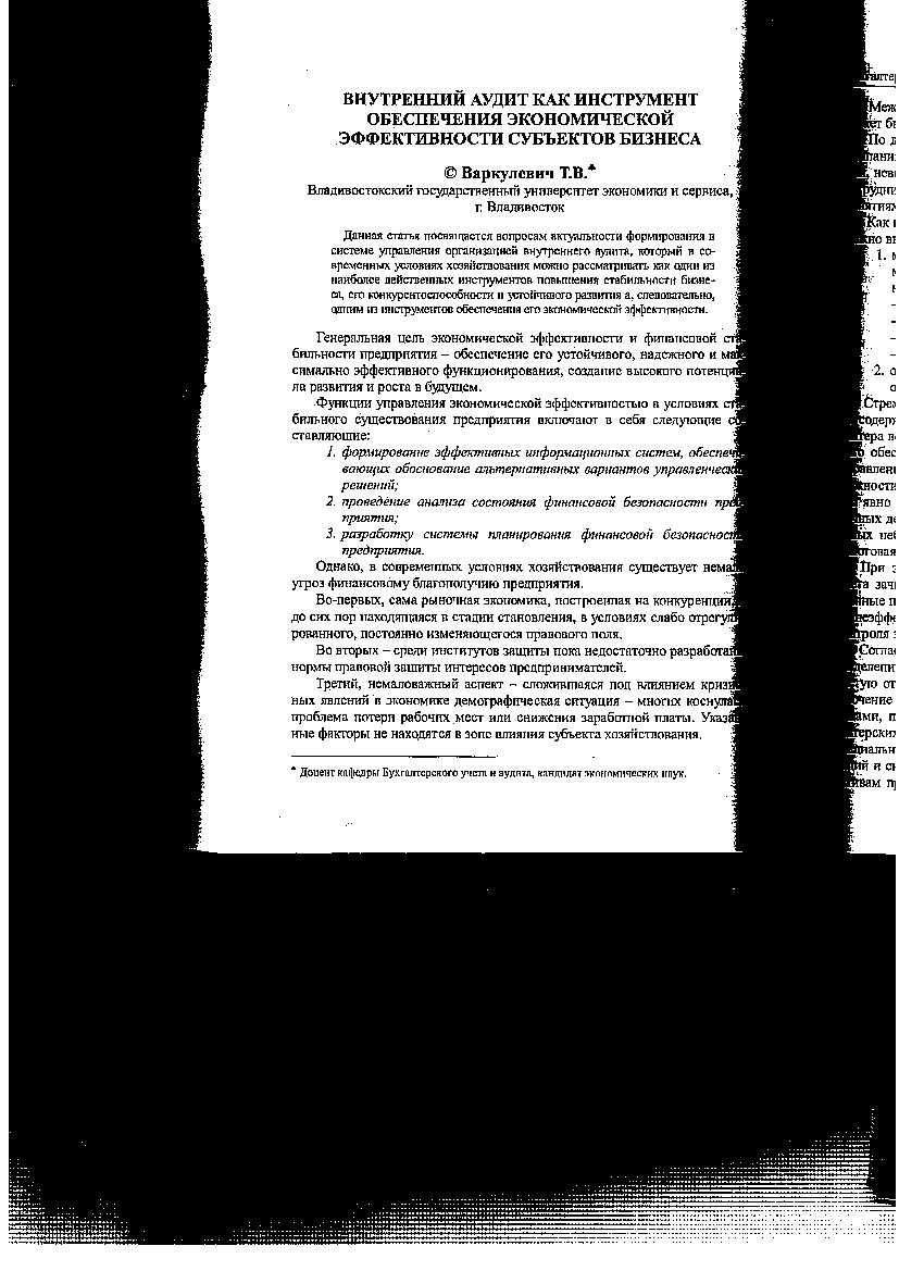Внутренний аудит как инструмент обеспечения экономической эффективности субъектов бизнеса