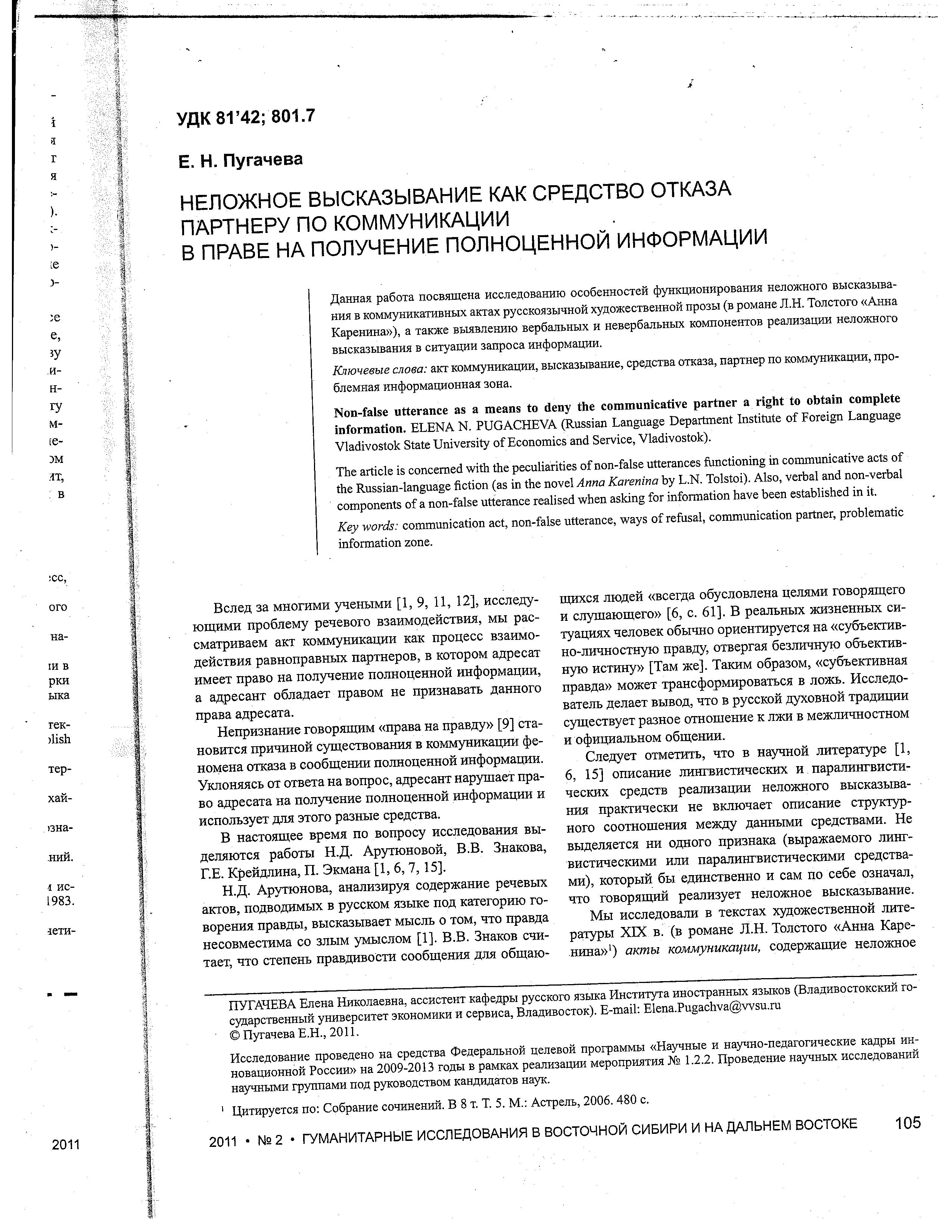 Неложное высказывание как средство отказа партнеру по коммуникации в праве на получение полноценной информации