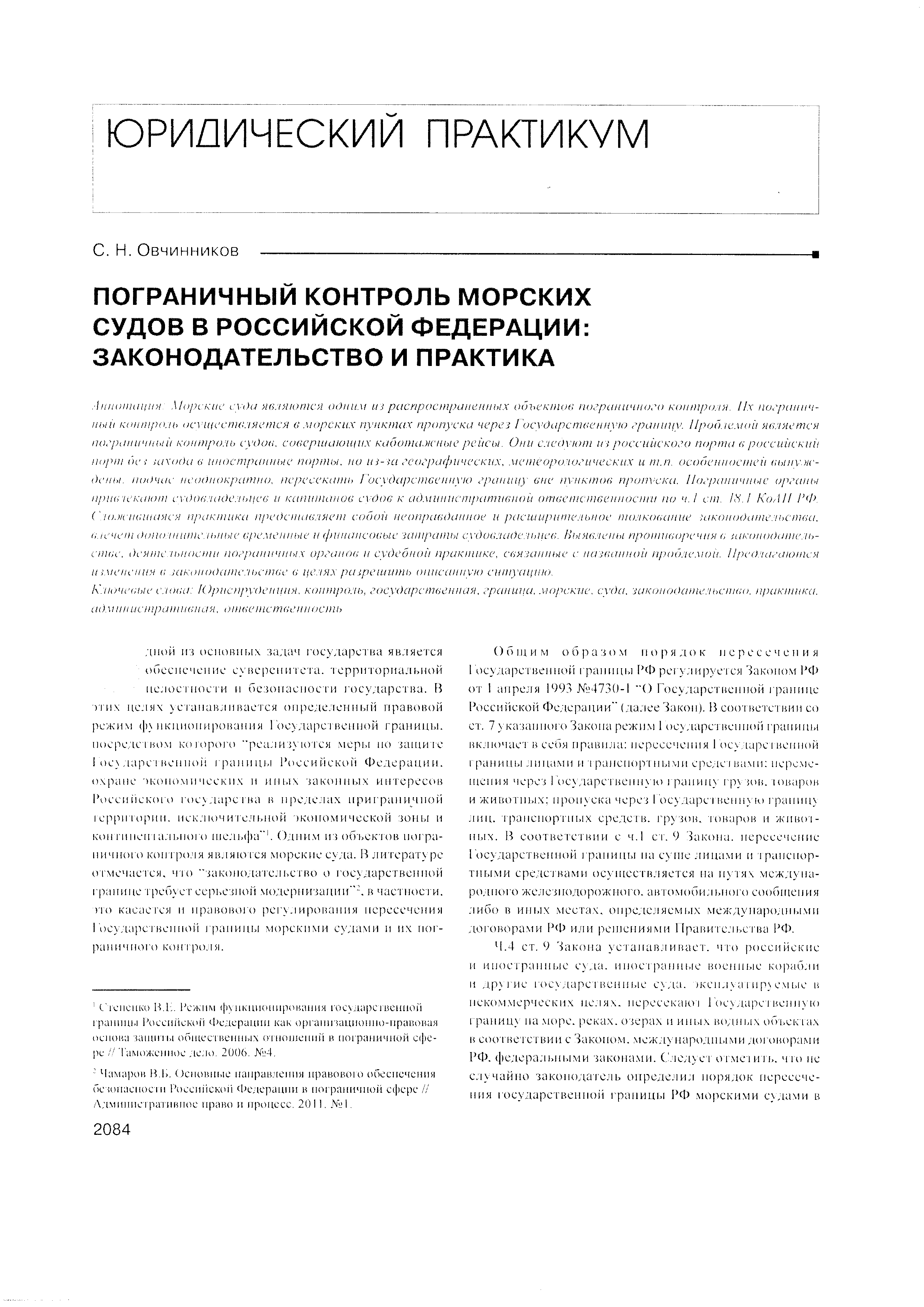 Пограничный контроль морских судов в РФ: законодательство и практика