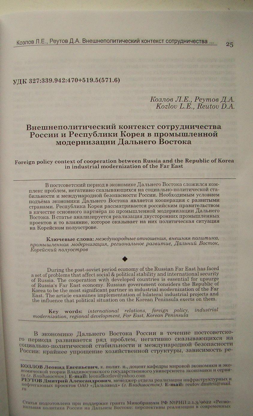 Внешнеполитический контекст сотрудничества России и Республики Корея в промышленной модернизации Дальнего Востока
