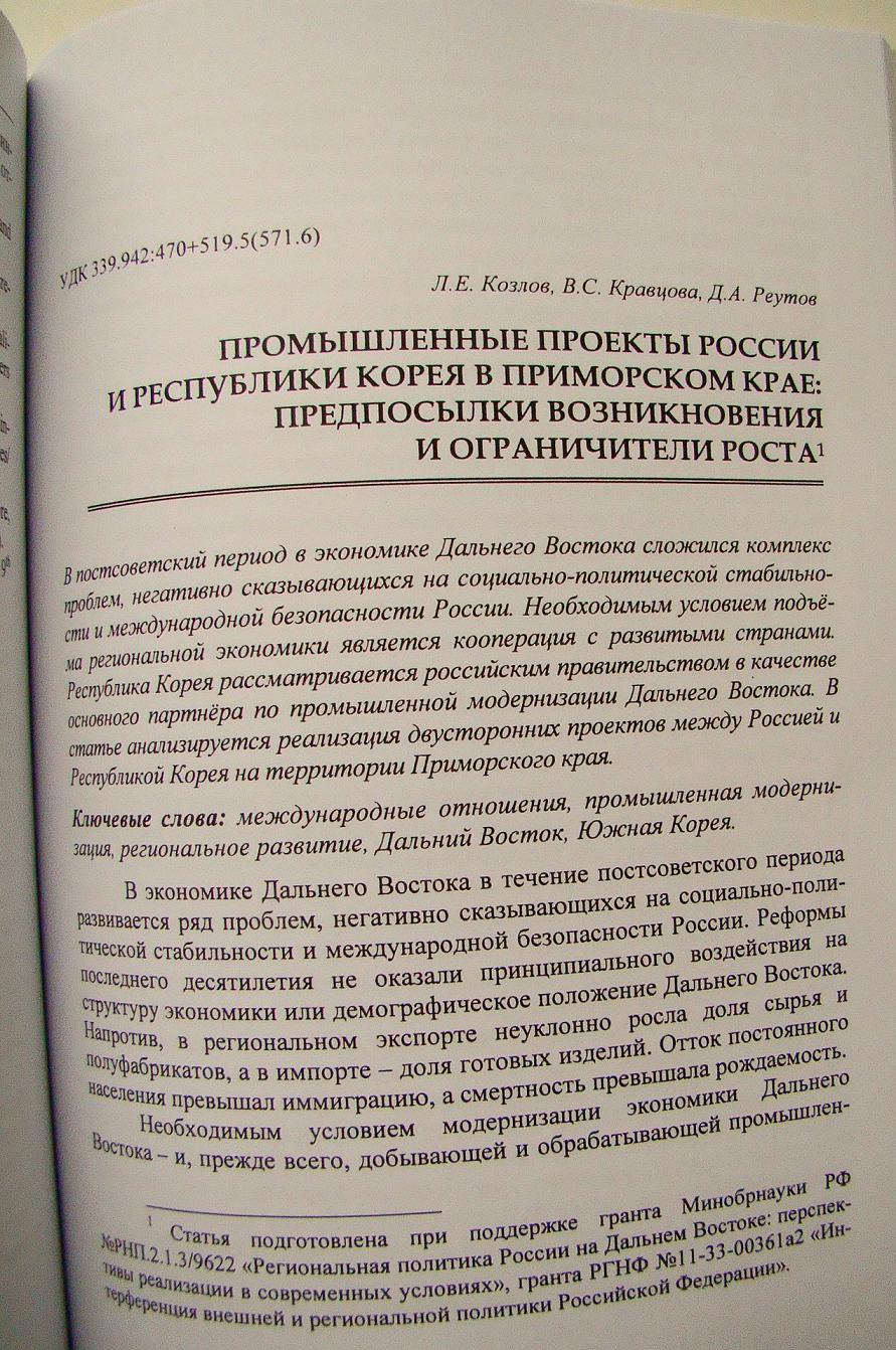 Промышленные проекты России и Республики Корея в Приморском крае: предпосылки возникновения и ограничители роста