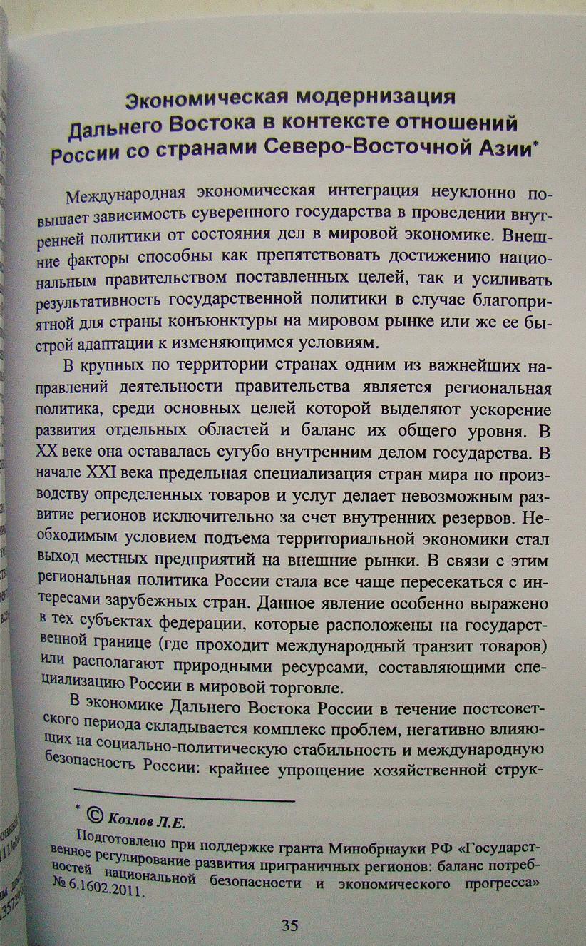 Экономическая модернизация Дальнего Востока в контексте отношений России со странами Северо-Восточной Азии