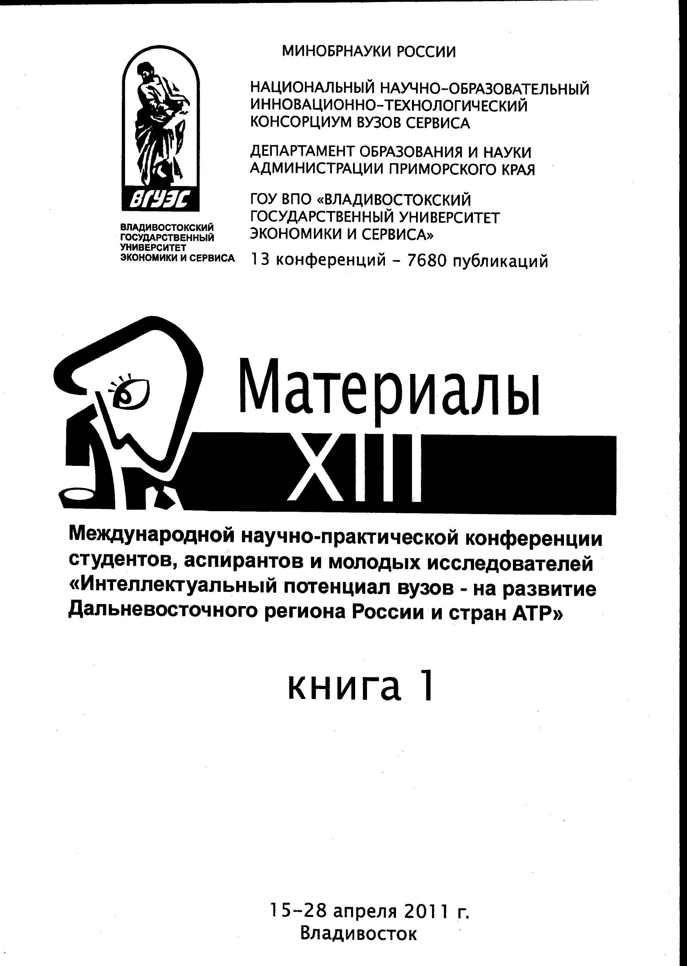 Материалы XIII Международной научно-практической конференции студентов, аспирантов и молодых исследователей "Интеллектуальный потенциал вузов - на развитие Дальневосточного региона России и стран АТР"