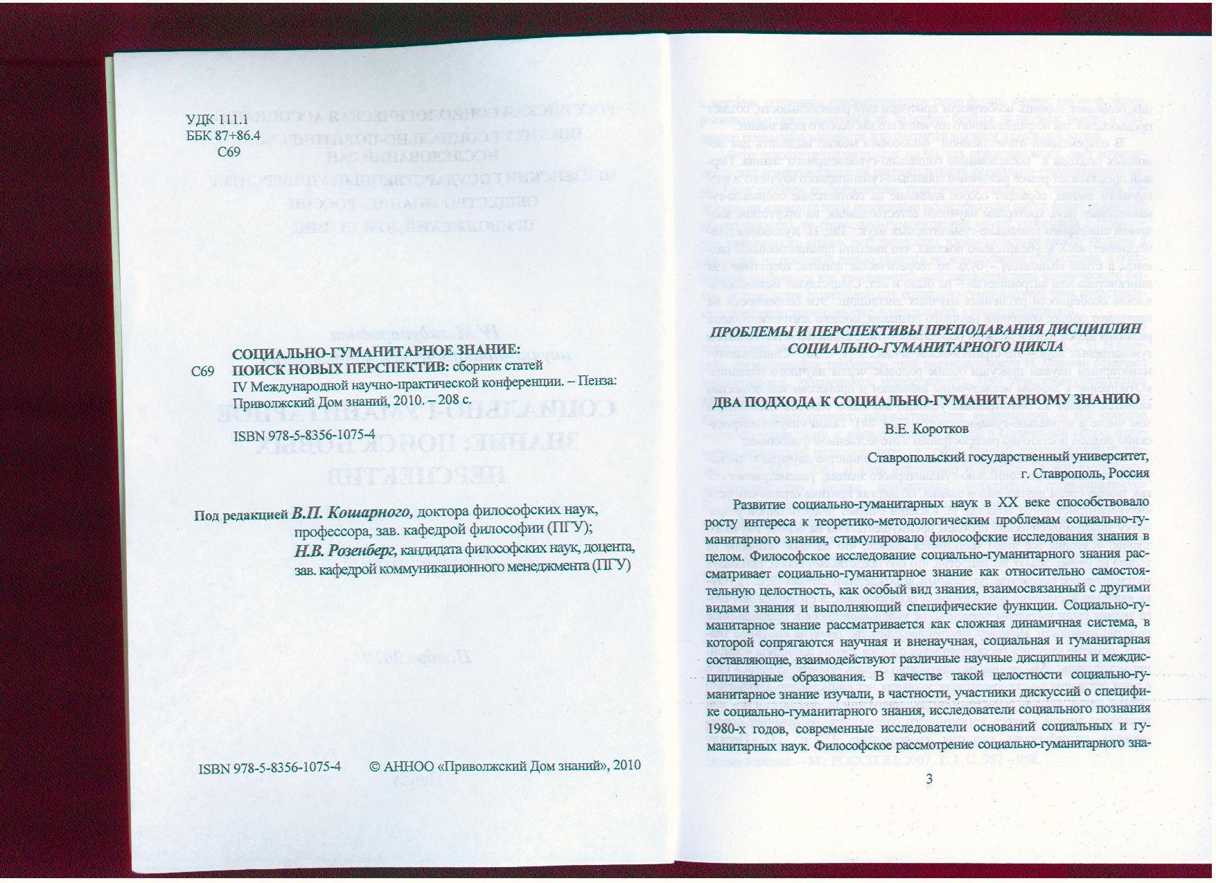 Социально-гуманитарное знание: поиск новых перспектив