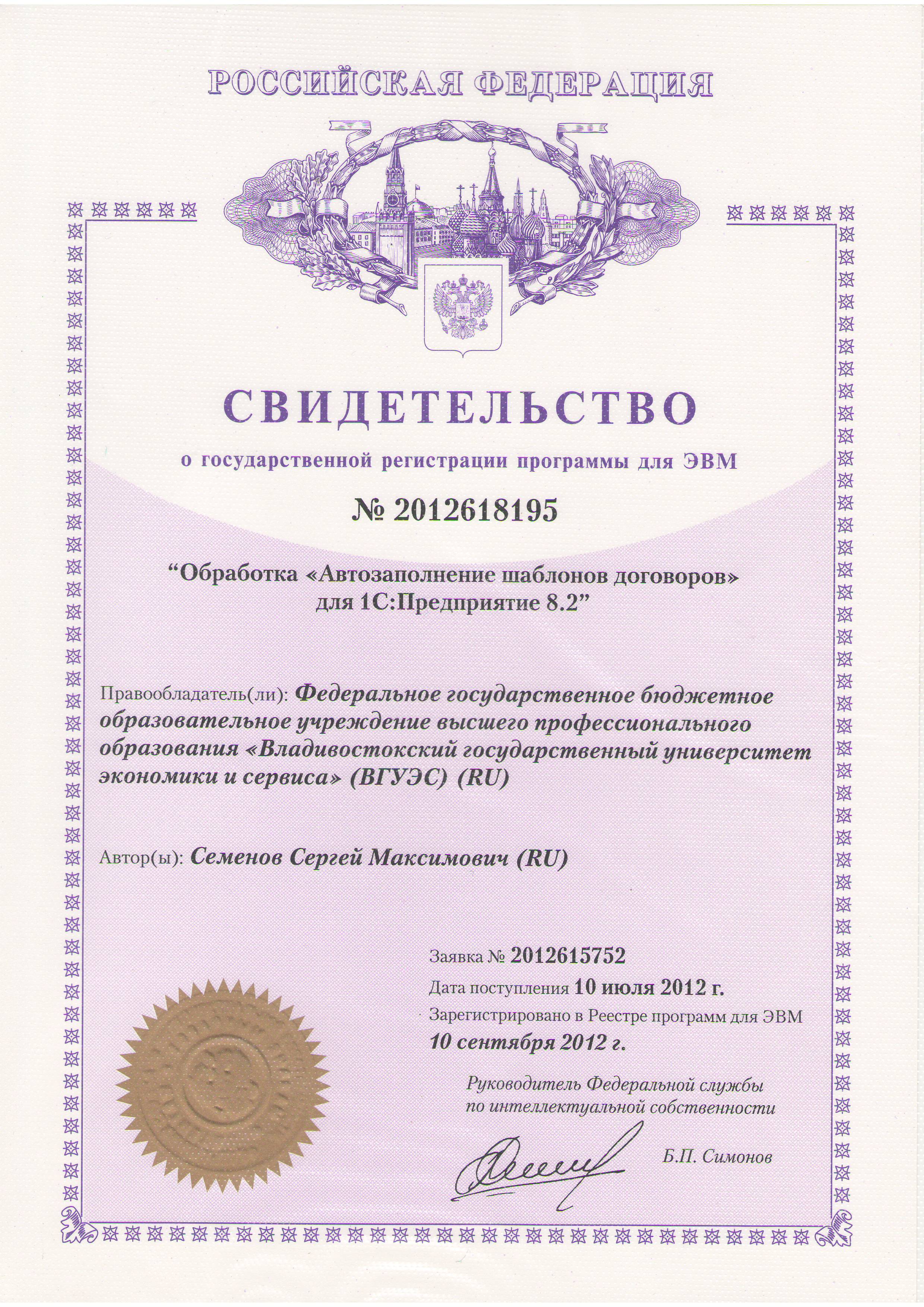 Свидетельства на ПО