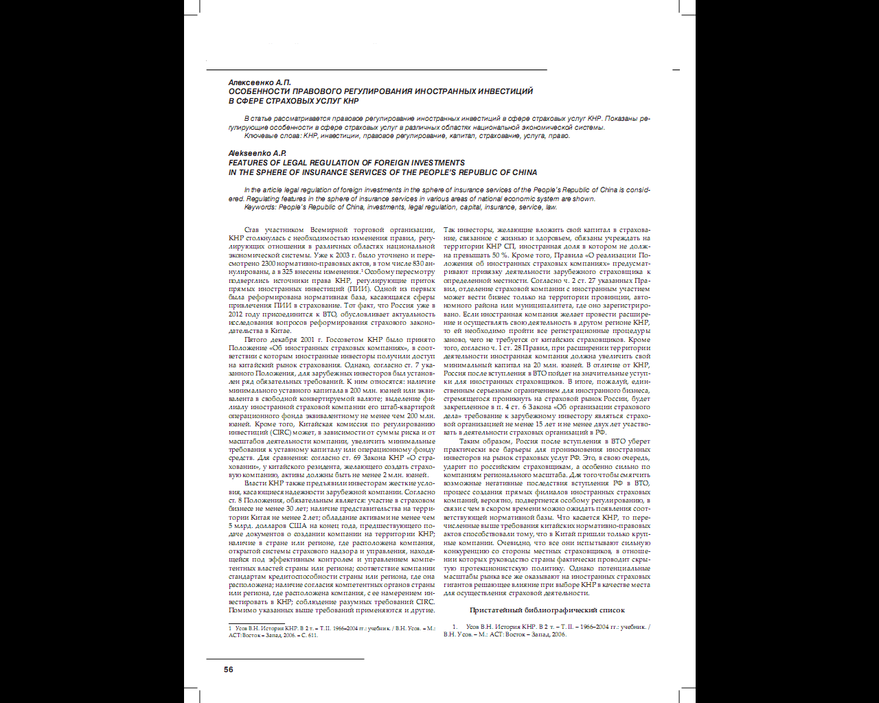 Особенности правового регулирования иностранных инвестиций в сфере страховых услуг КНР