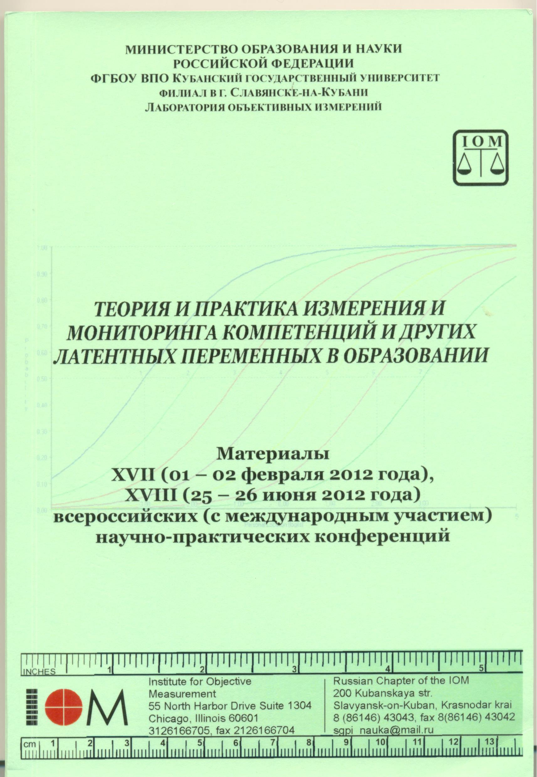 Теория и практика измерения и мониторинга компетенций и других латентных переменных в образовании: материалы XVII (01-02 февра-ля), XVIII (25-26 июня 2012г) всероссийских (с международным участием) научно - практических конференций