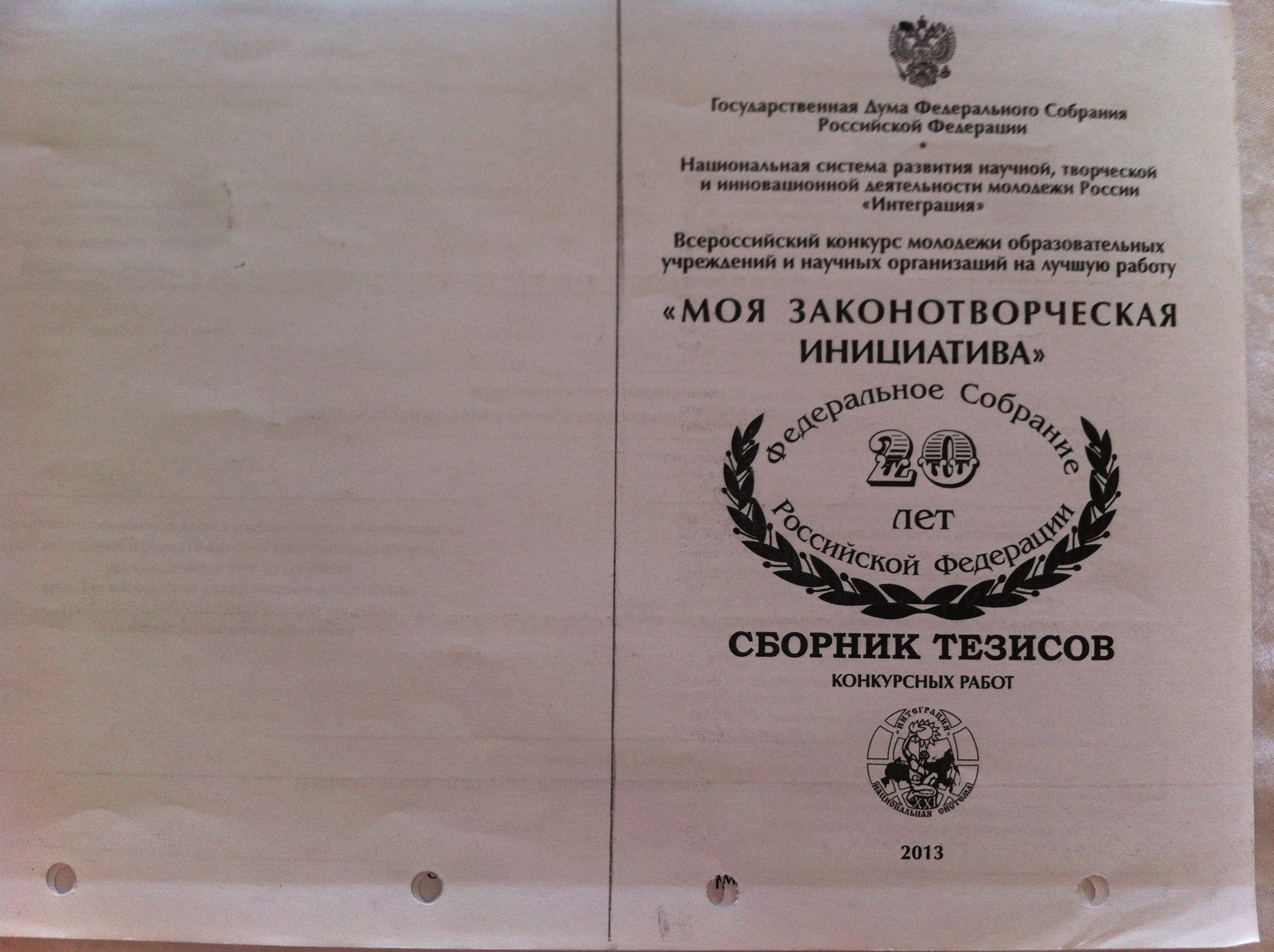 "Моя законотворческая инициатива. Сборник тезисов конкурсных работ"