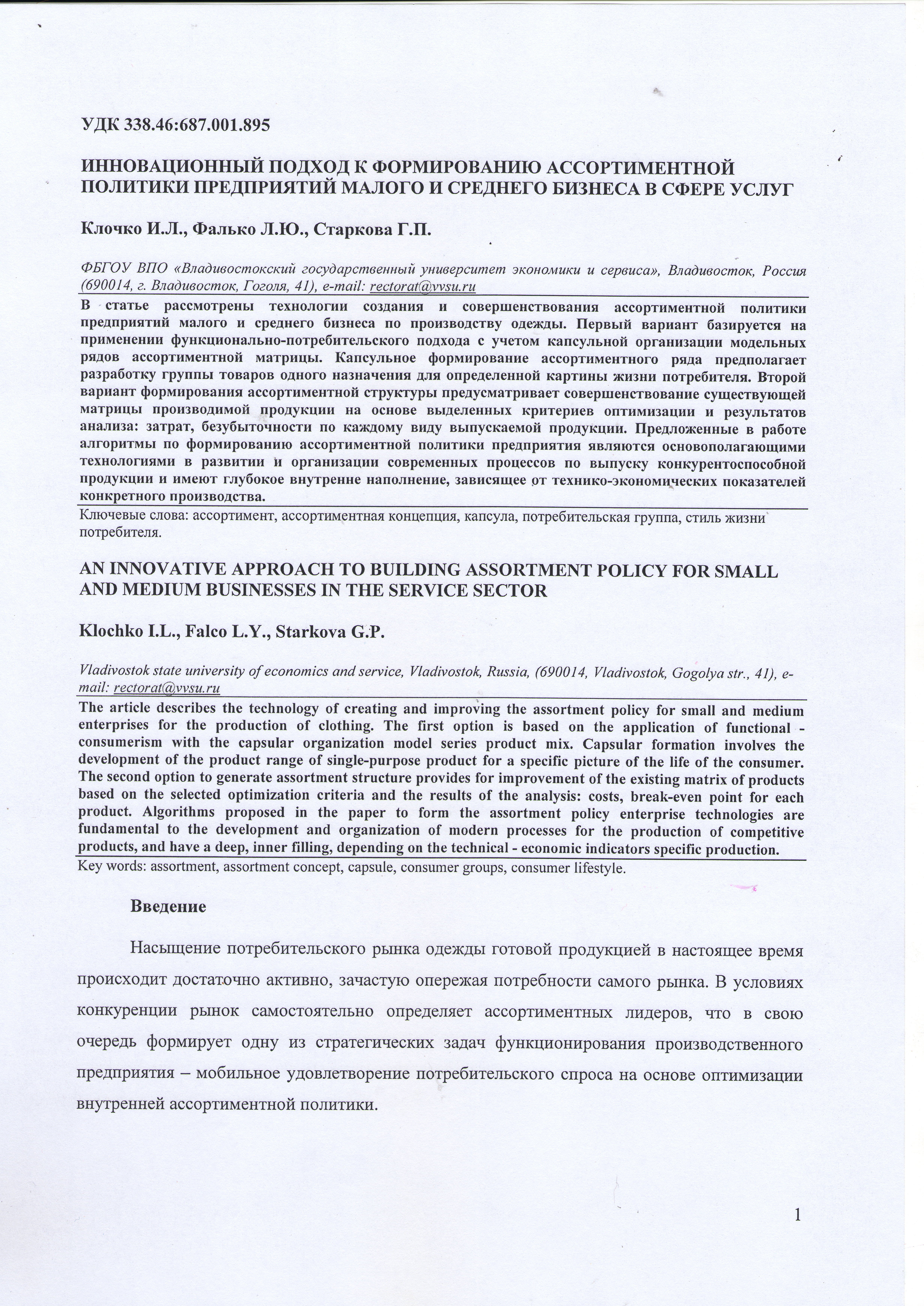 Инновационный подход к формированию ассортимент-ной политики предприятий малого и среднего бизнеса в сфере услуг