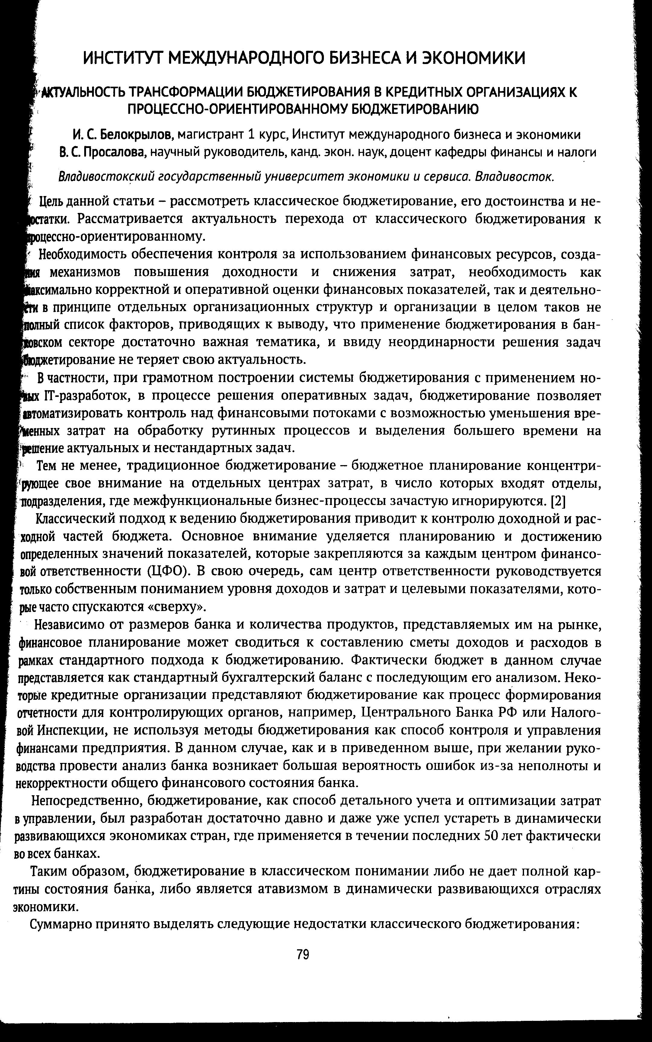 Актуальность трансформации бюджетирования в кредитных организациях к процессно-ориентированному бюджетированию