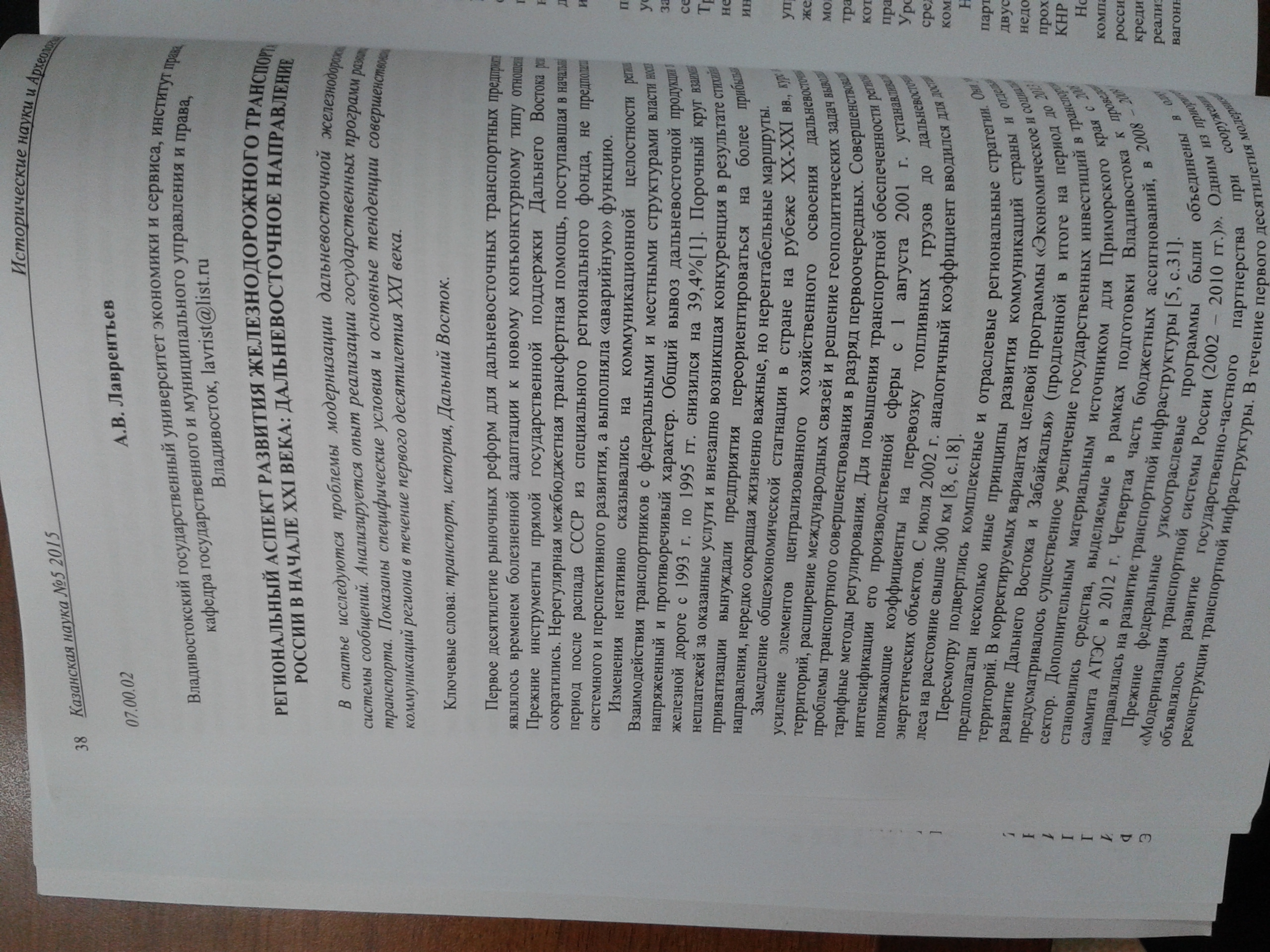Региональный аспект развития железнодорожного транспорта России в начале ХХI века: дальневосточное направление