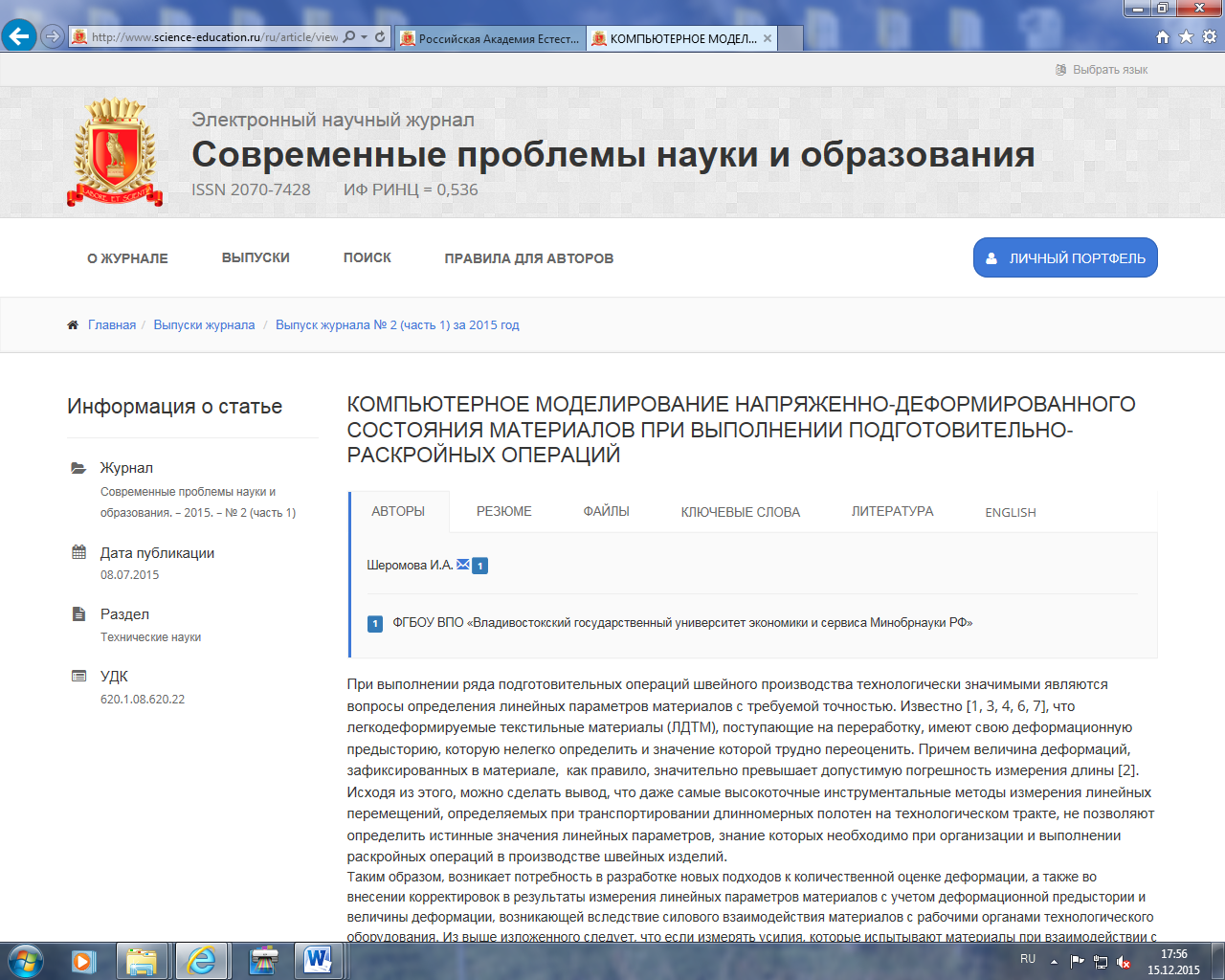Компьютерное моделирование напряженно-деформированного состояния материалов при выполнении подготовительно-раскройных операций