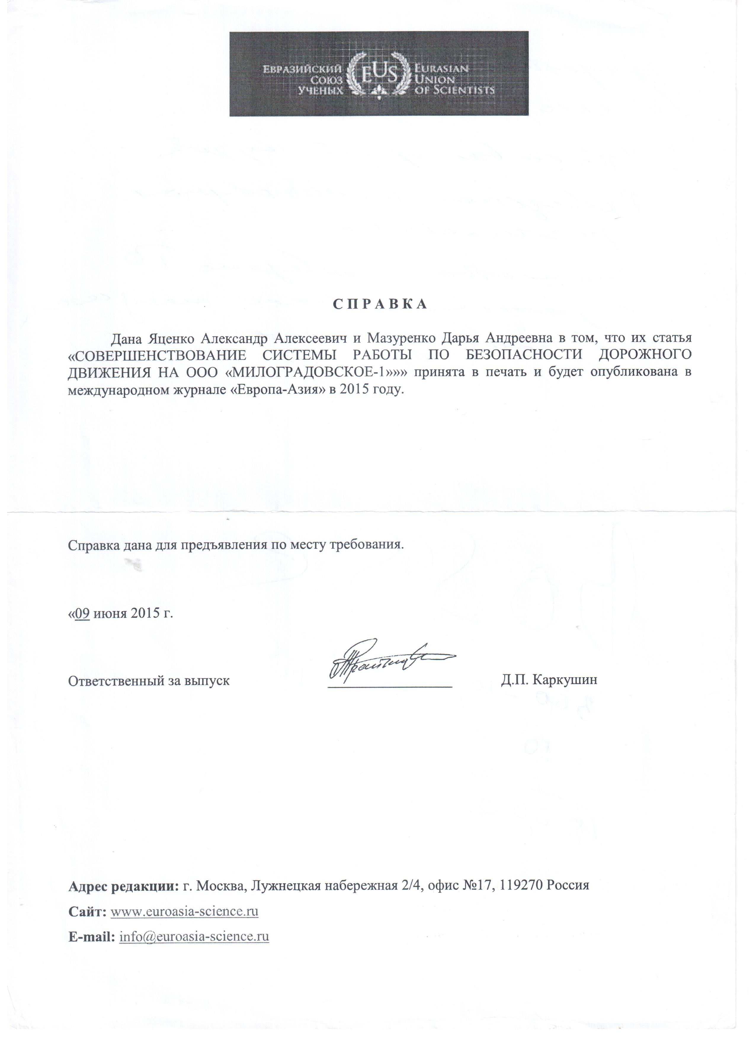 Совершенствование системы работы по безопасности дорожного движения на ООО "Милоградовское-1"