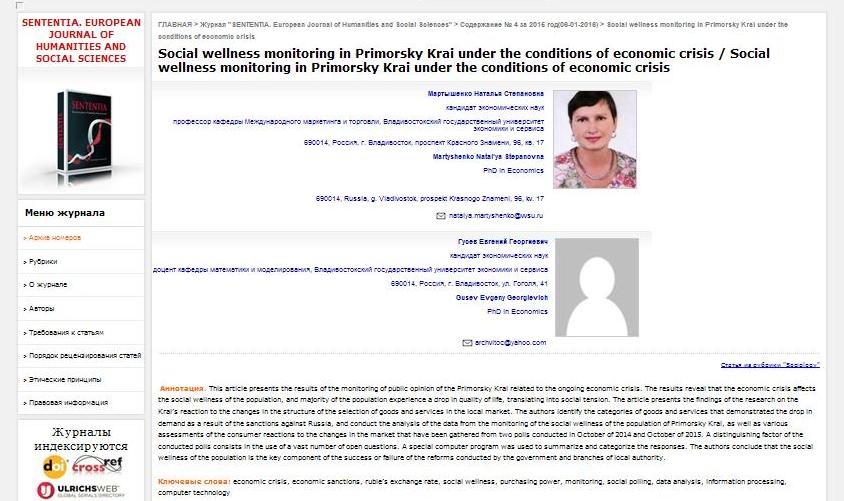Social wellness monitoring in Primorsky Krai under the conditions of economic crisis