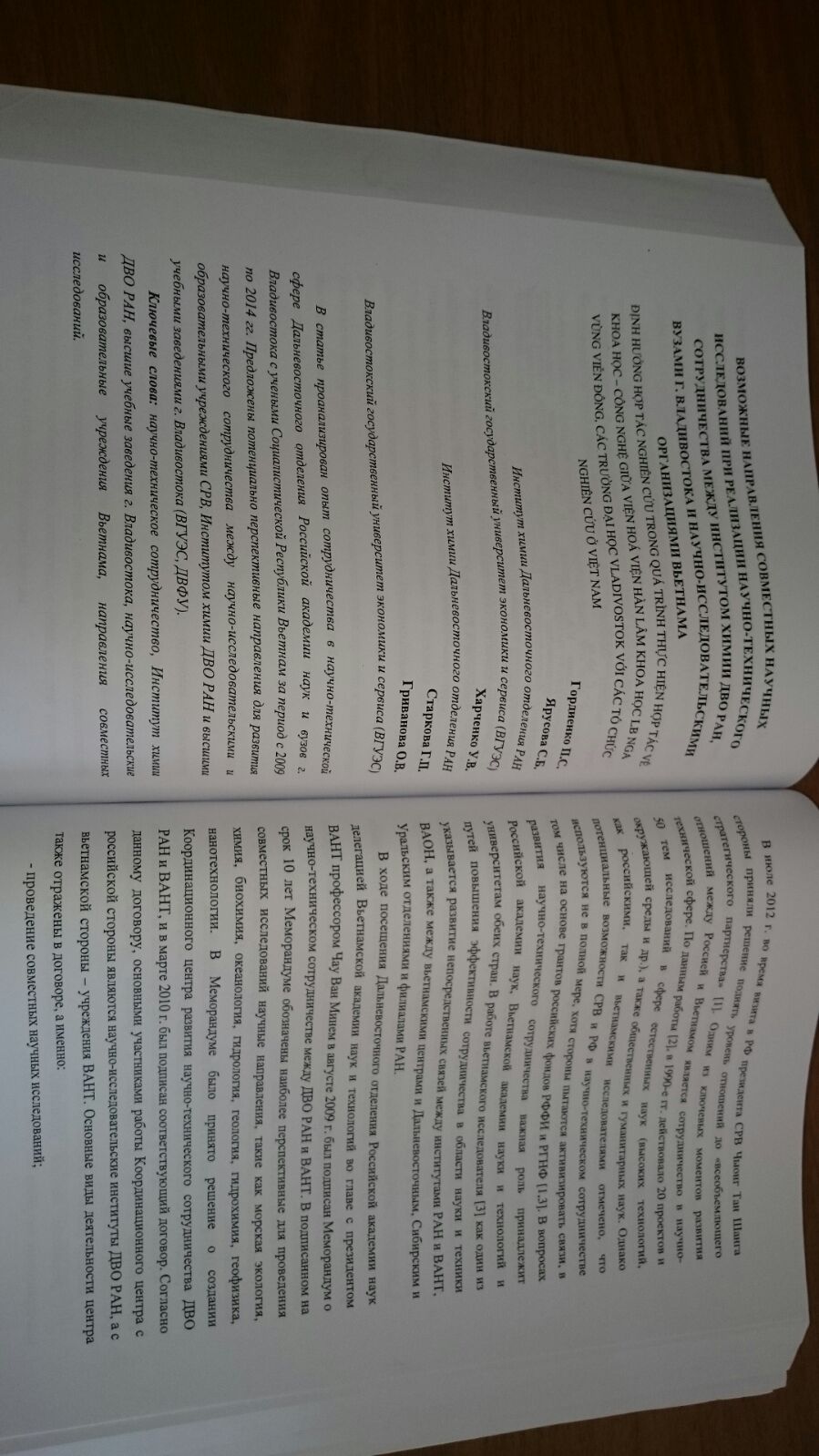 Возможные направления совместных научных исследований между институтом Химии ДВО РАН ,вузами г.Владивостока и научно-исследовательскими организациями Вьетнама