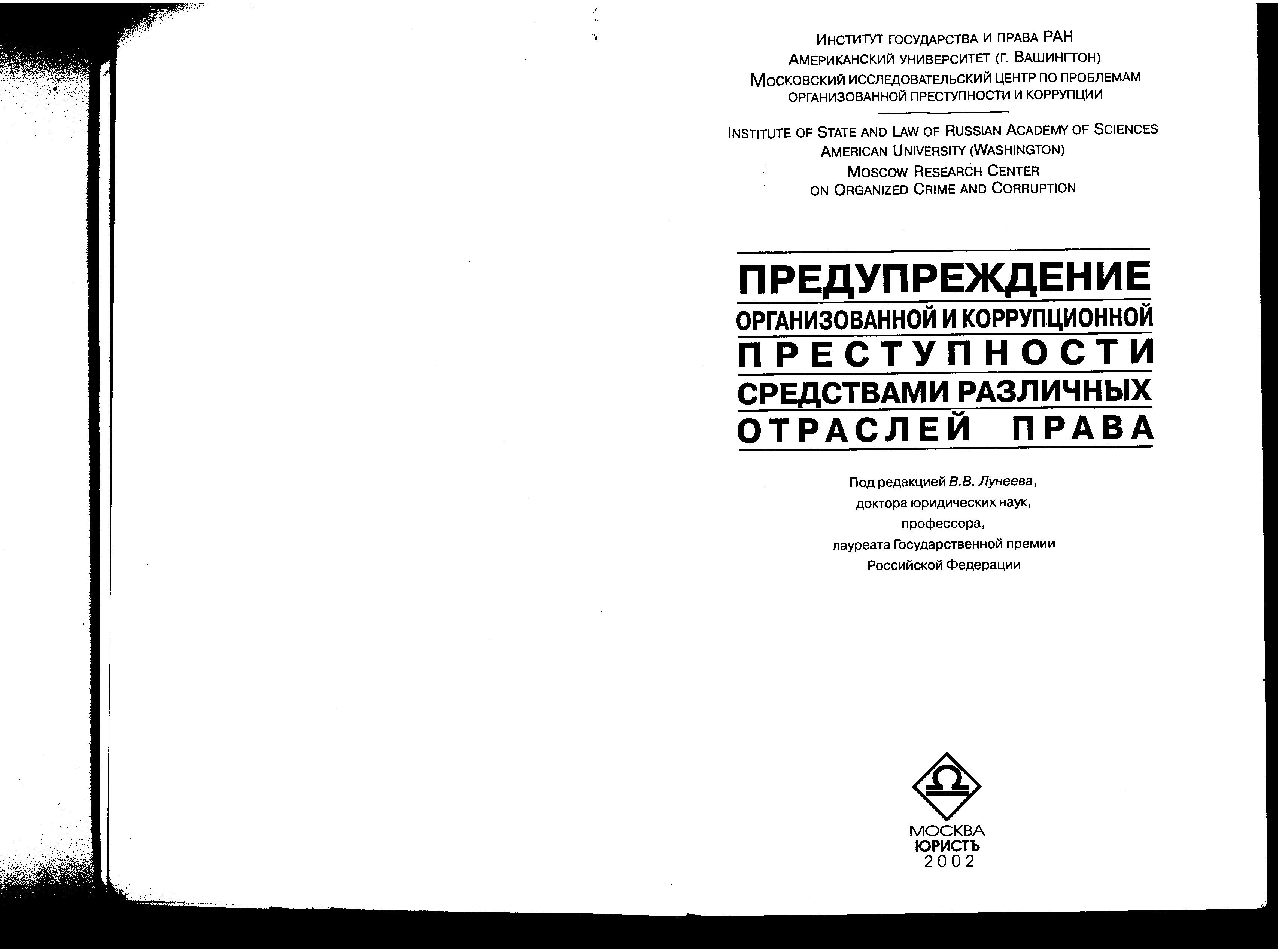 Предупреждение организованной и коррупционной преступности средствами различных отраслей права. Сб. материалов международной науч.-практ. конф.2000; круглого стола, 2001; международной науч.-практ.-конф., 2001