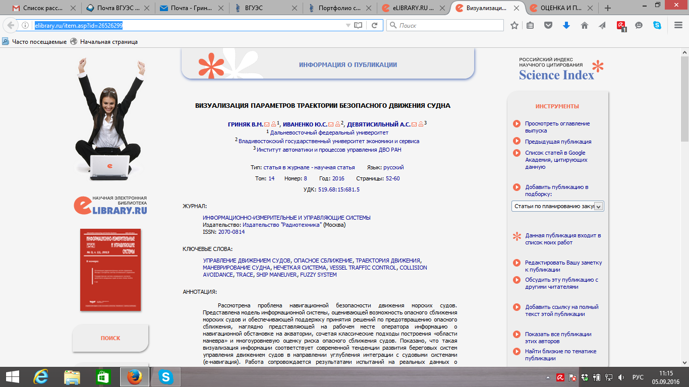 Визуализация параметров траектории безопасного движения судна