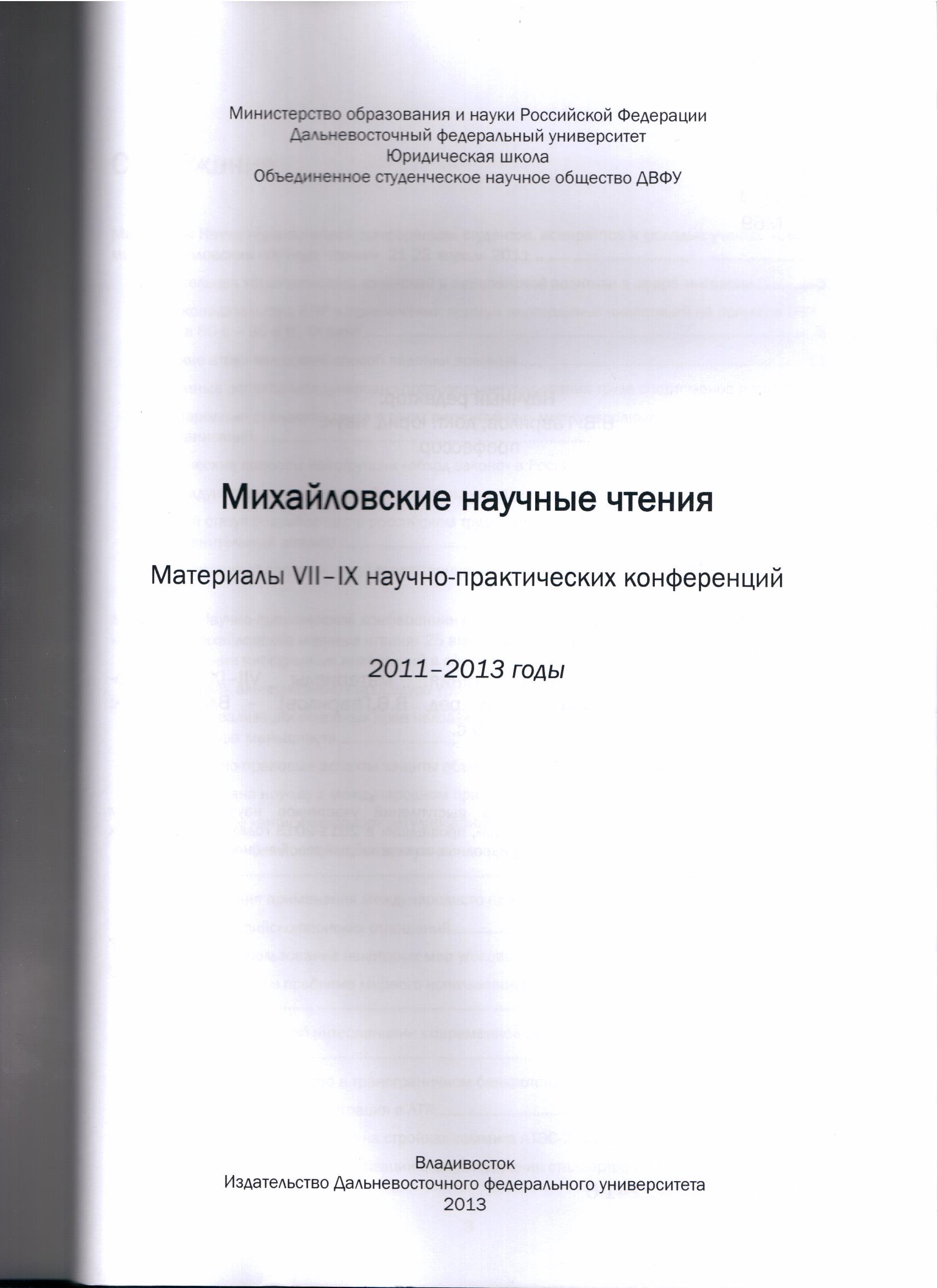 Михайловские научные чтения: материалы VII-IX научно-практических конференций / [науч. ред. В.В. Гаврилов]. - Владивосток: Дальневост. федерал. ун-т., 2013. ISBN 978-5-7444-3241-6