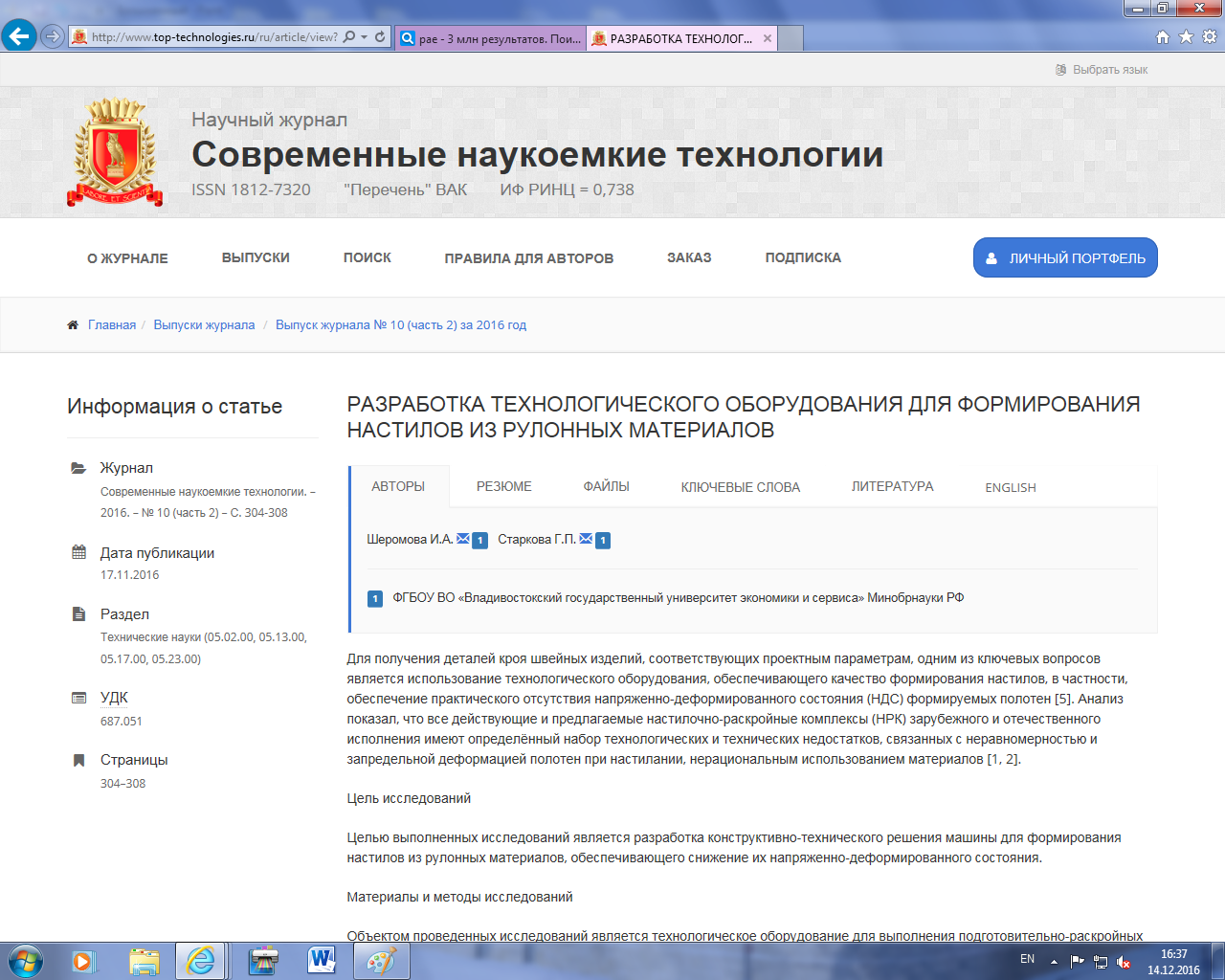 Разработка технологического оборудования для формирования настилов из рулонных материалов
