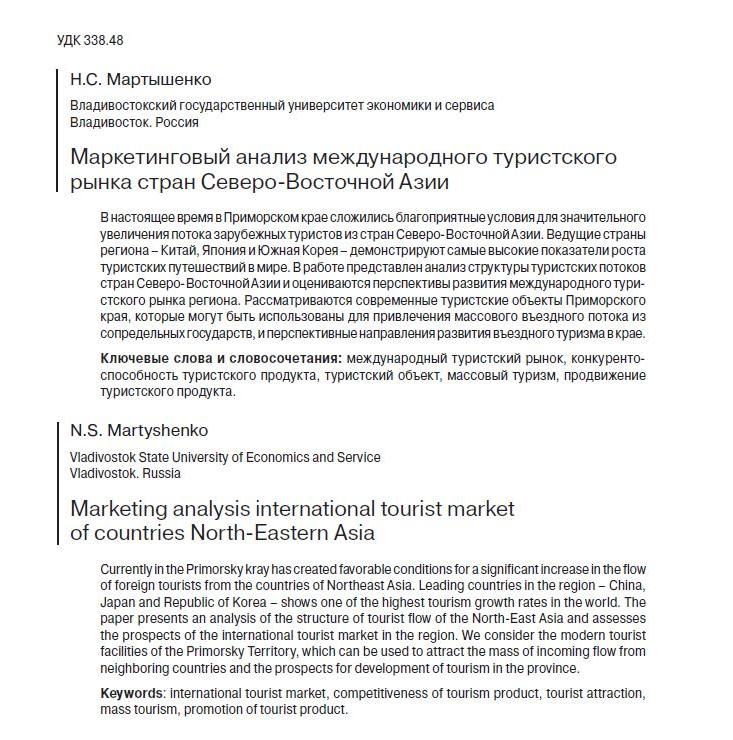 Маркетинговый анализ международного туристского рынка стран Северо-Восточной Азии