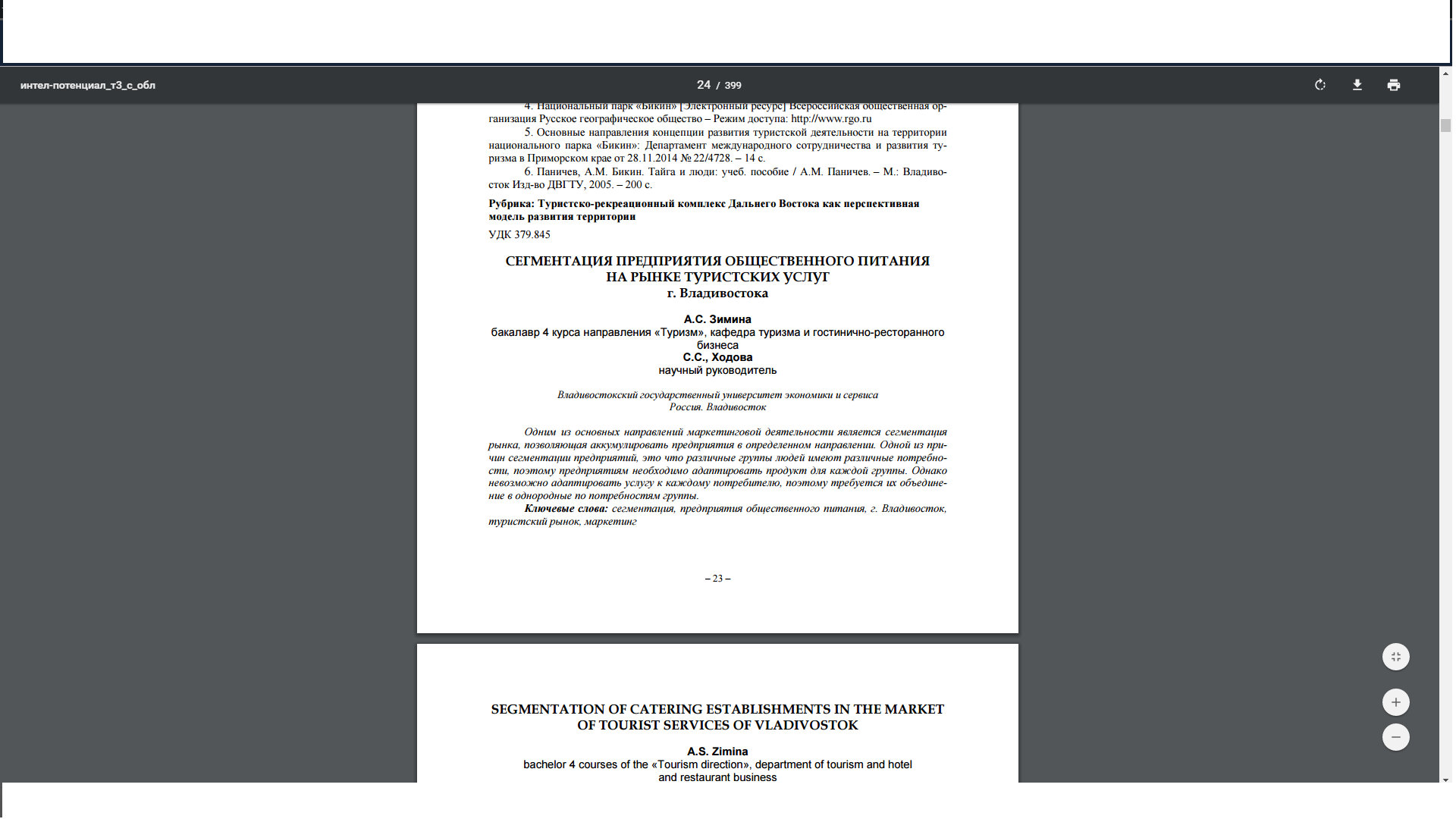 Сегментация предприятия общественного питания на рынке туристских услуг г. Владивостока