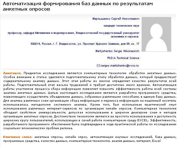Автоматизация формирования баз данных по результатам анкетных опросов