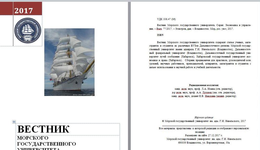 Вестник Морского государственного университета