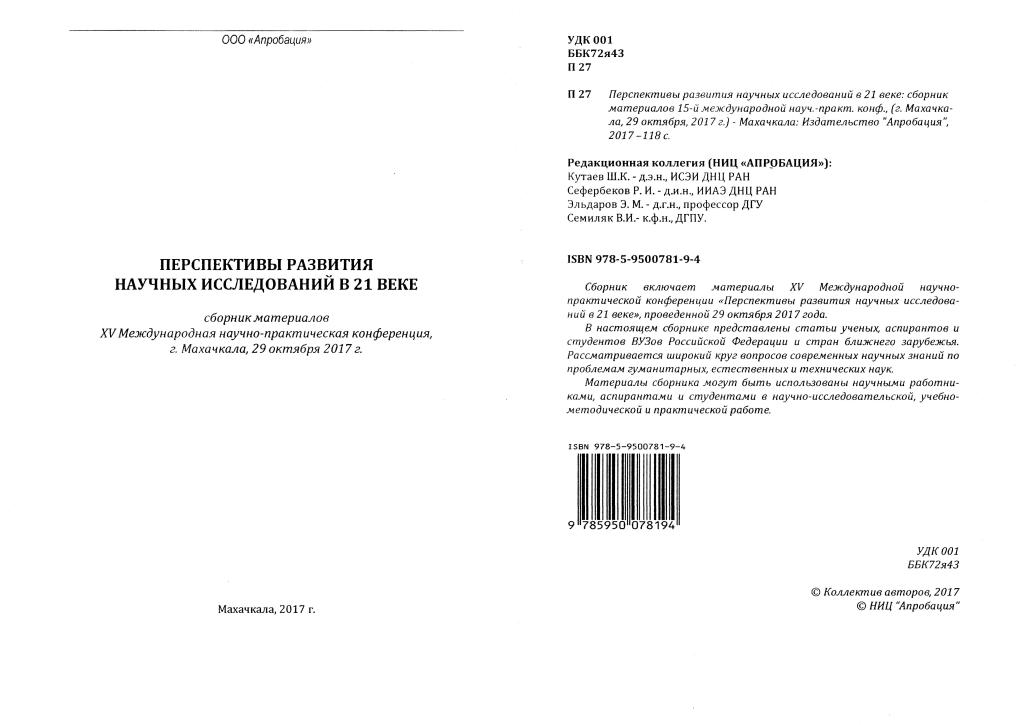XV Международная научно-практическая конференция. Перспективы развития научных исследований в 21 веке.