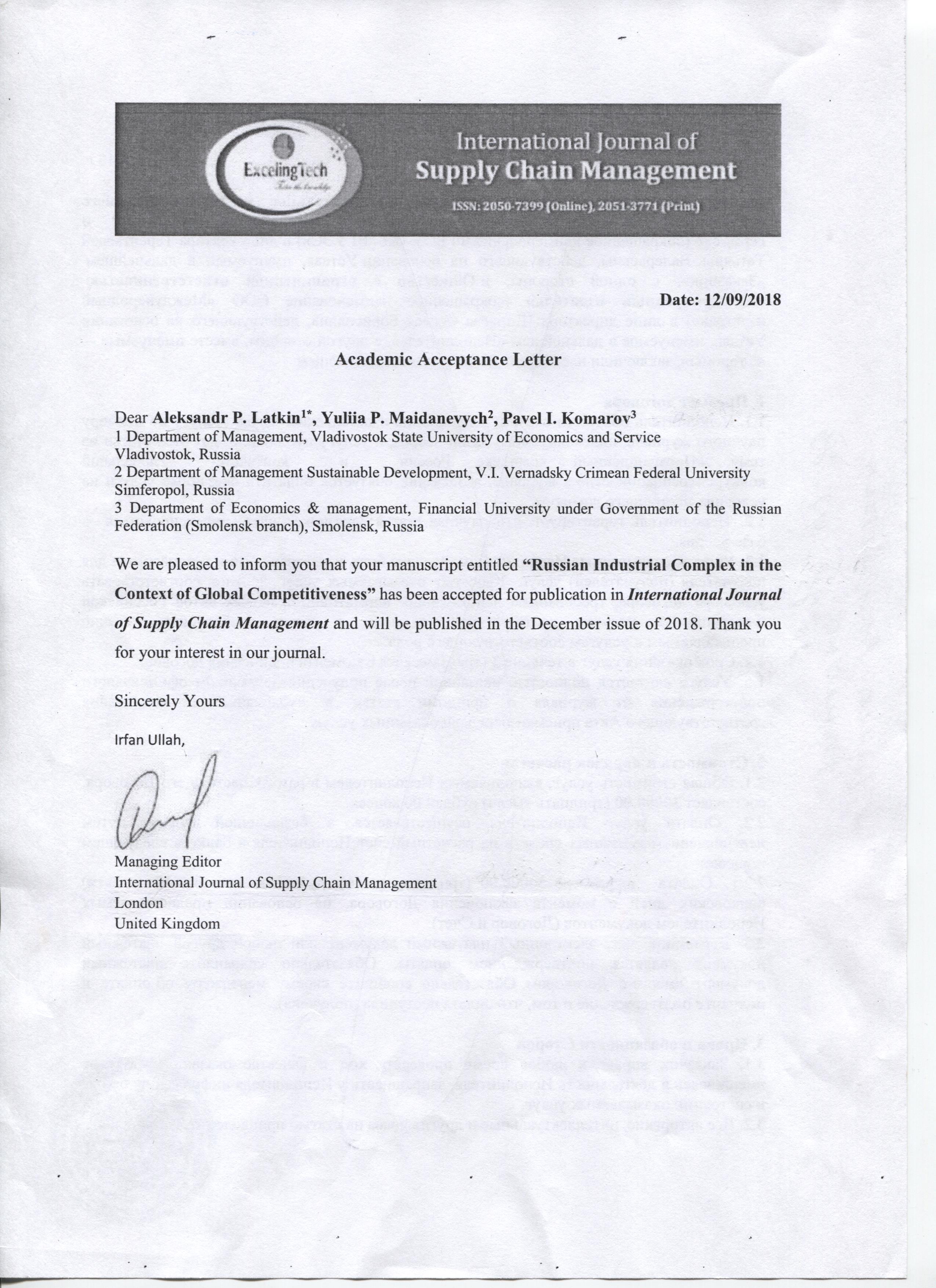 International Journal of Supply Chain Management