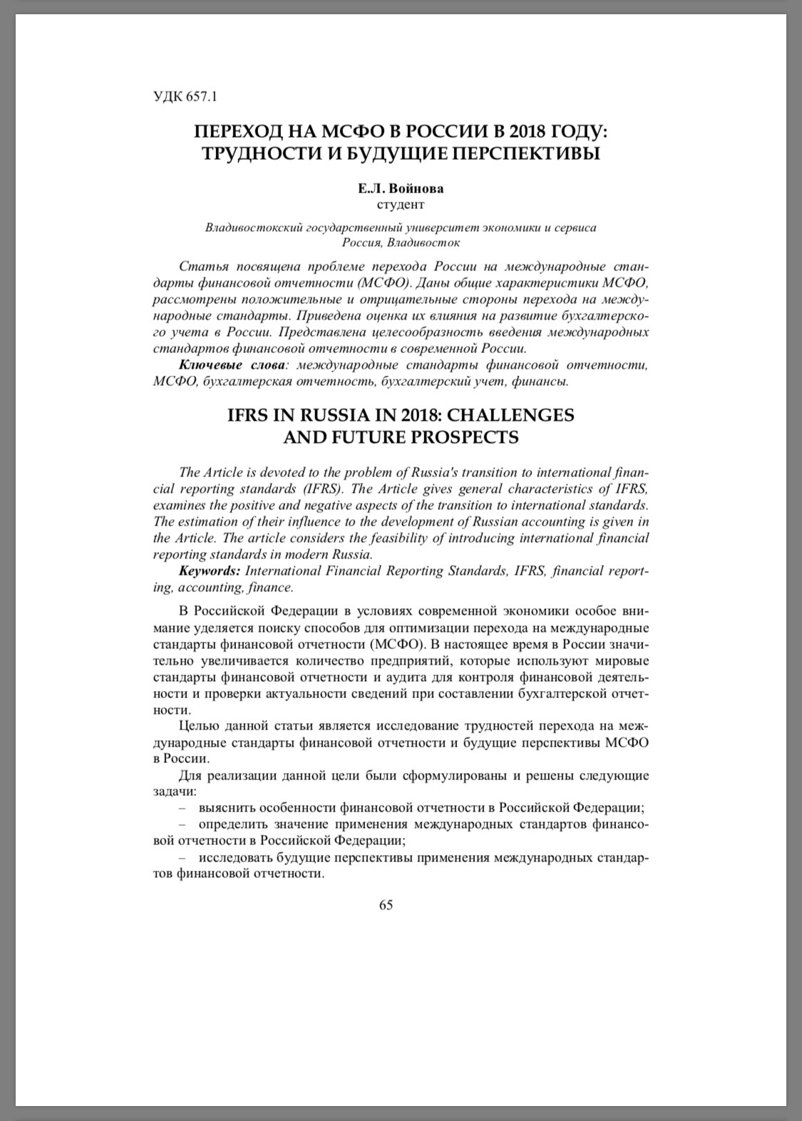 Переход на МСФО в России в 2018 году:трудности и будущие перспективы