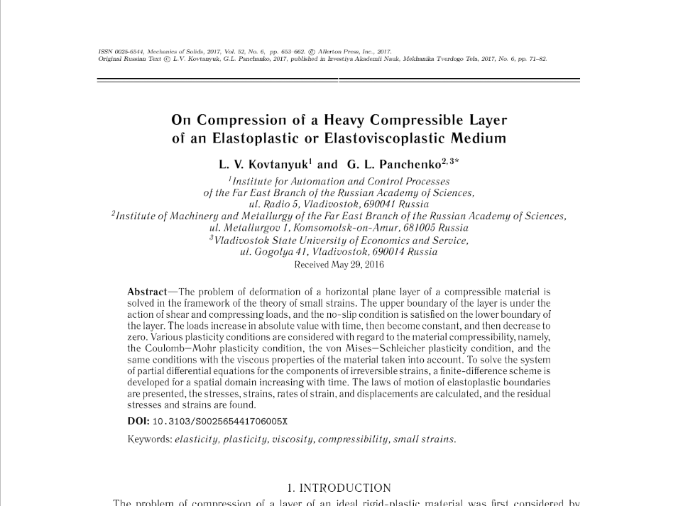 On compression of a heavy compressible layer of an elastoplastic or elastoviscoplastic medium