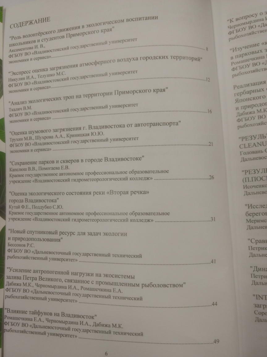 Материалы молодежной тематической конференции г. Владивосток "Окружающая среда и устойчивое развитие - общая ответственность и забота"