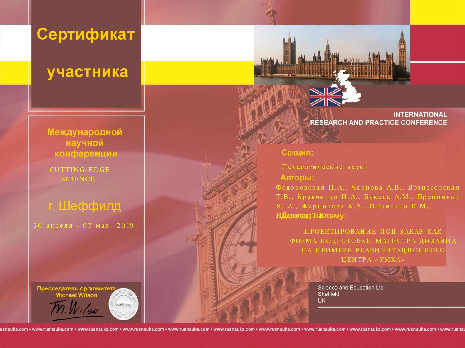 сборник научной конференции "Передовая наука", научный РИНЦ-журнал "NEWS OF SCIENCE AND EDUCATION "