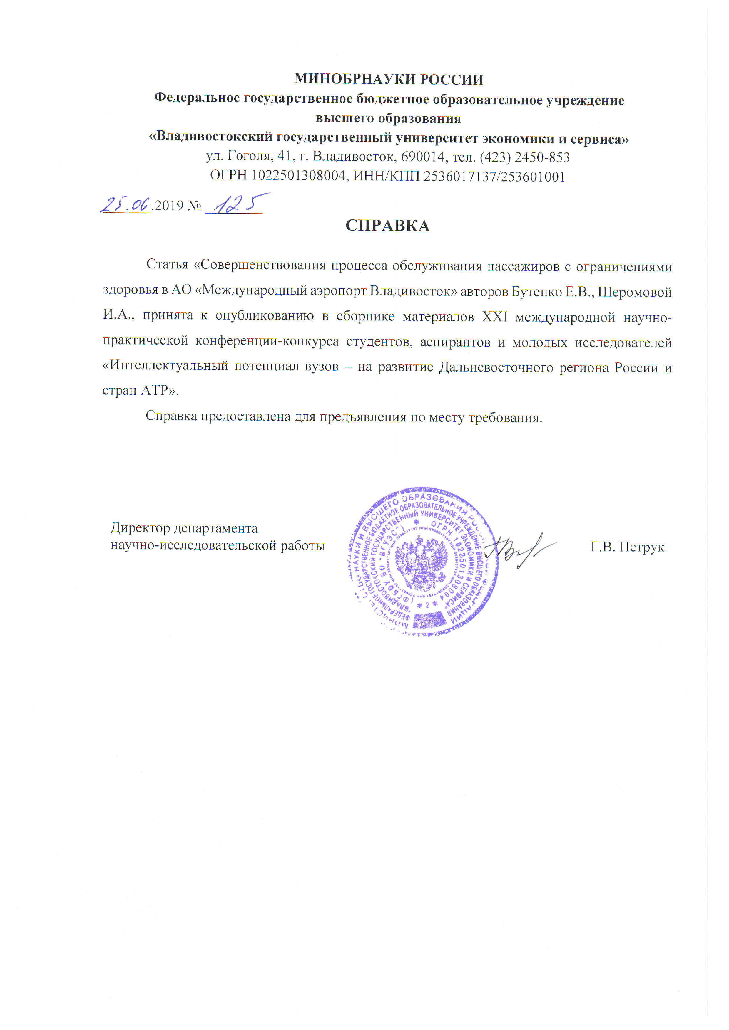 Совершенствования процесса обслуживания пассажиров с ограничениями здоровья в АО «Международный аэропорт Владивосток»